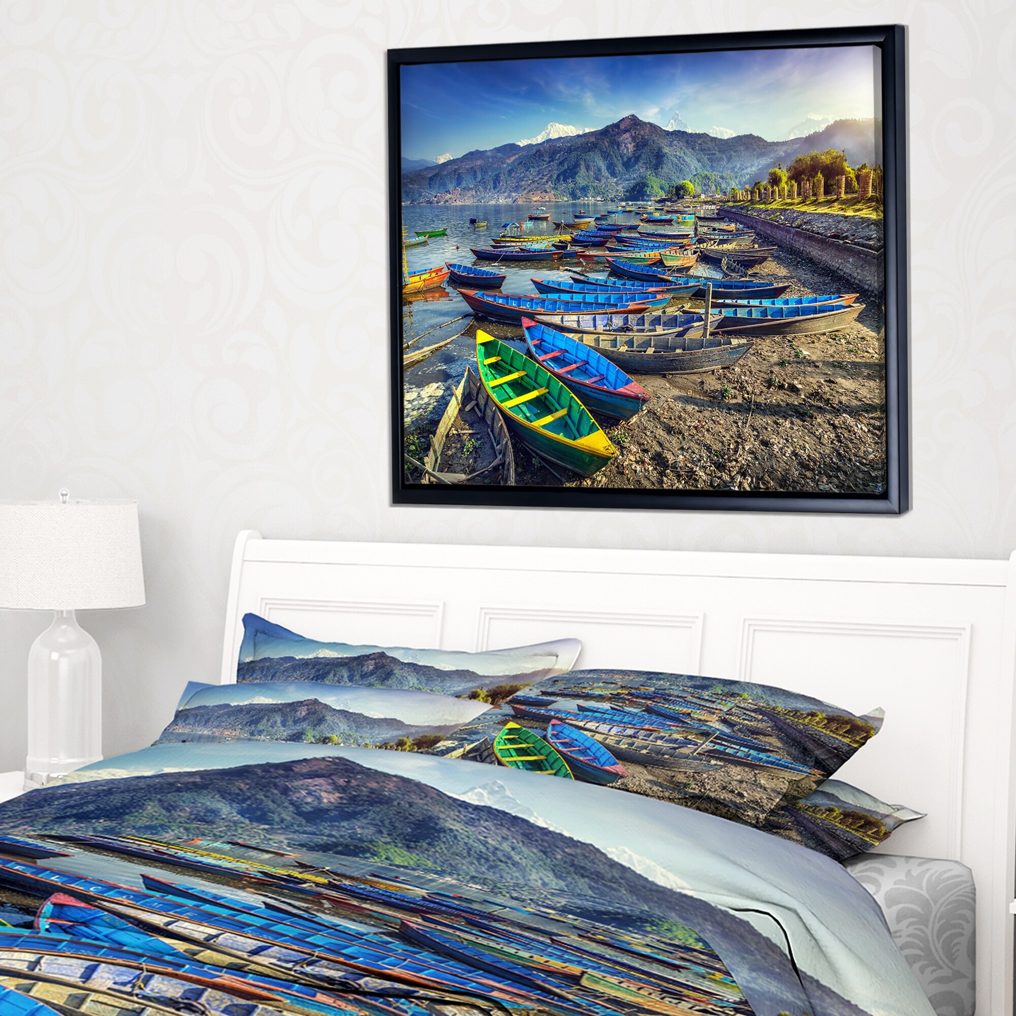 Designart "Color Boats on Phewa Lake Nepal" Boat Framed Canvas Art Print