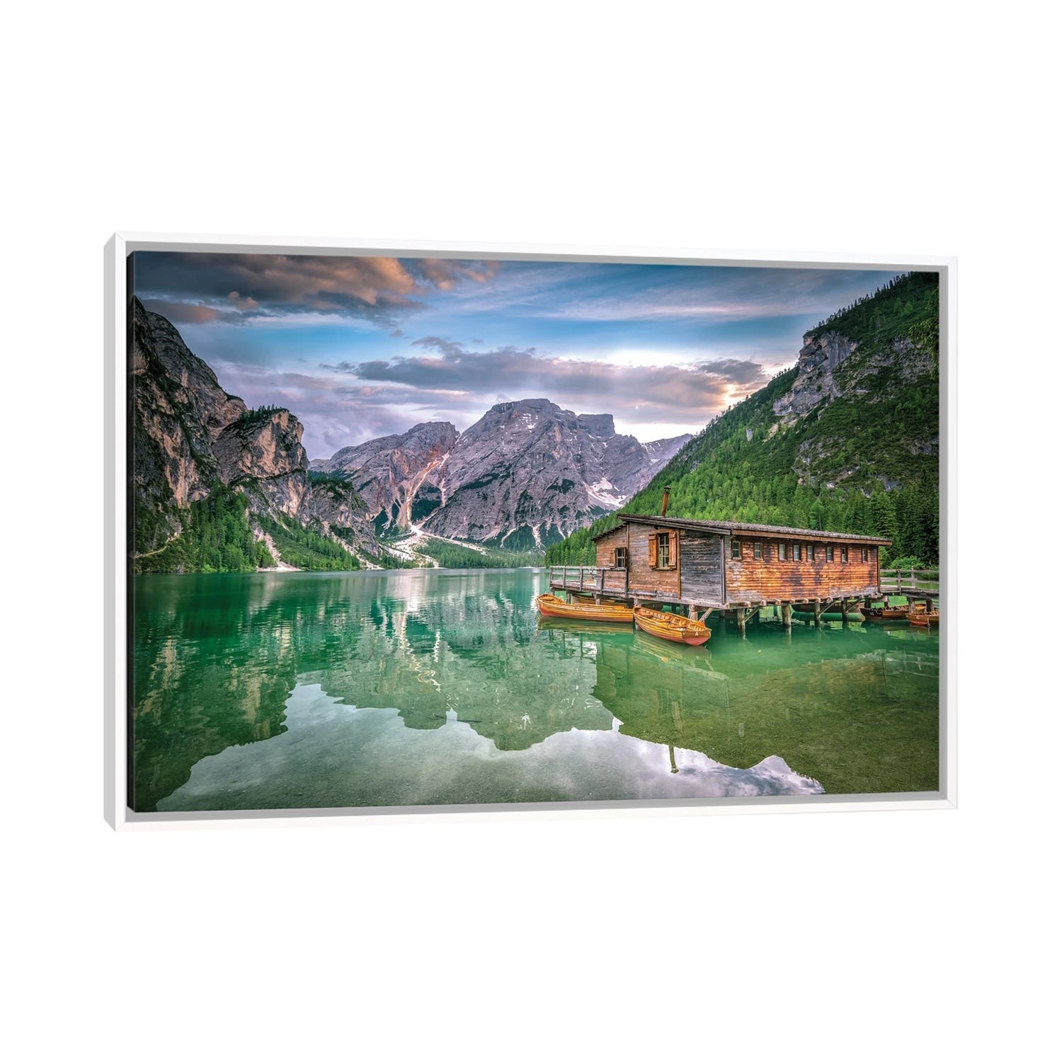 iCanvas "Braies Lake Boats" by Marco Carmassi Framed