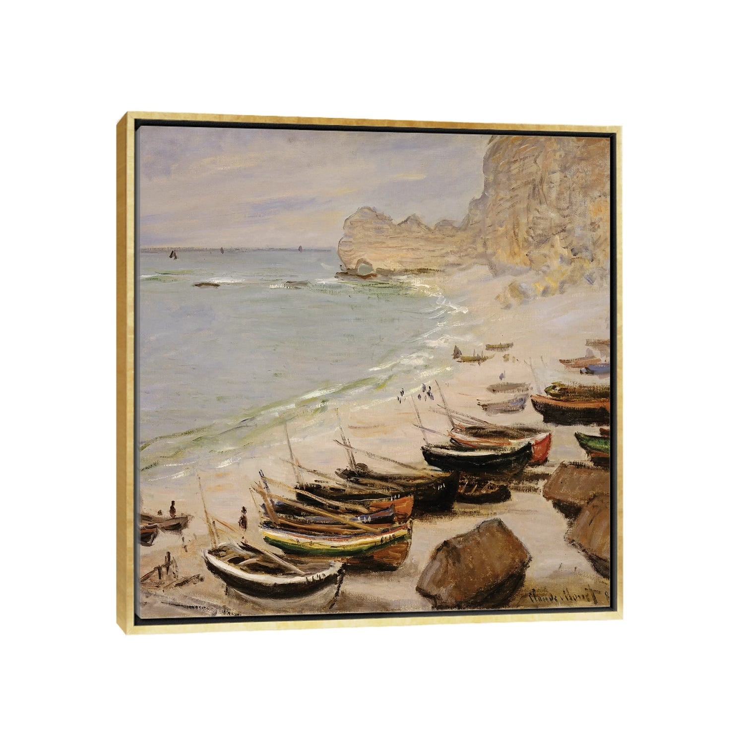 iCanvas "Boats on the Beach at Etretat, 1883 " by Claude Monet Framed Canvas Print