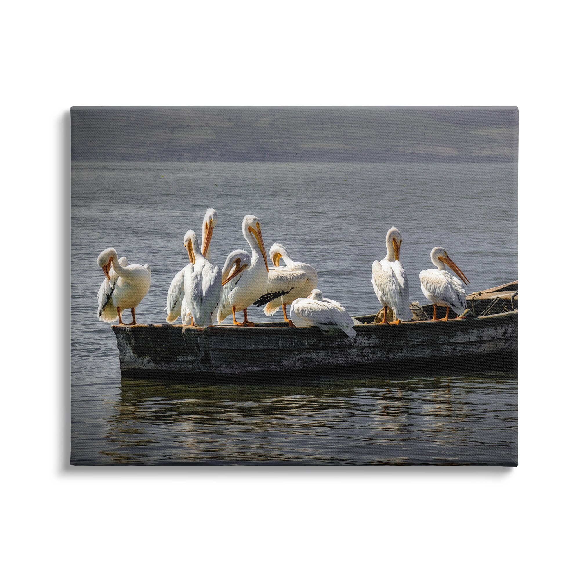 Stupell Pelican Flock on Floating Lake Boat Stretched Canvas Wall Art, Design by David Lorenz