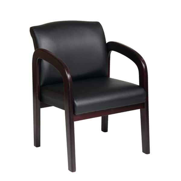Bonded Leather Mahogany Finish Wood Visitor Chair
