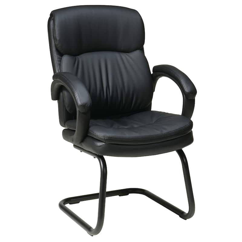 Bonded Leather Visitors Chair with Padded Arms and Sled Base