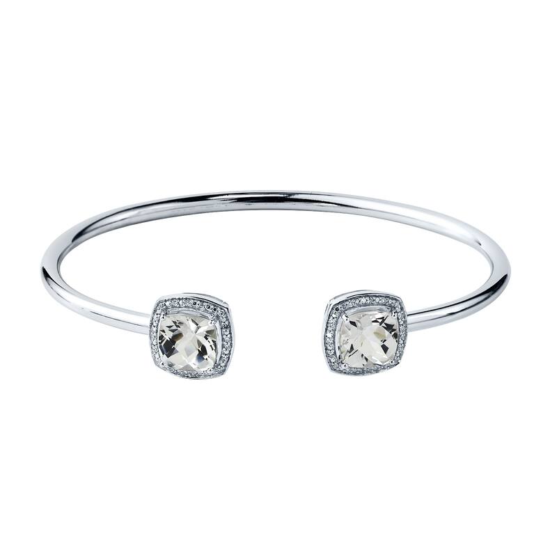 Auriya 5ct Cushion-Cut White Topaz Gold over Silver Bangle Bracelet with Diamond Accents