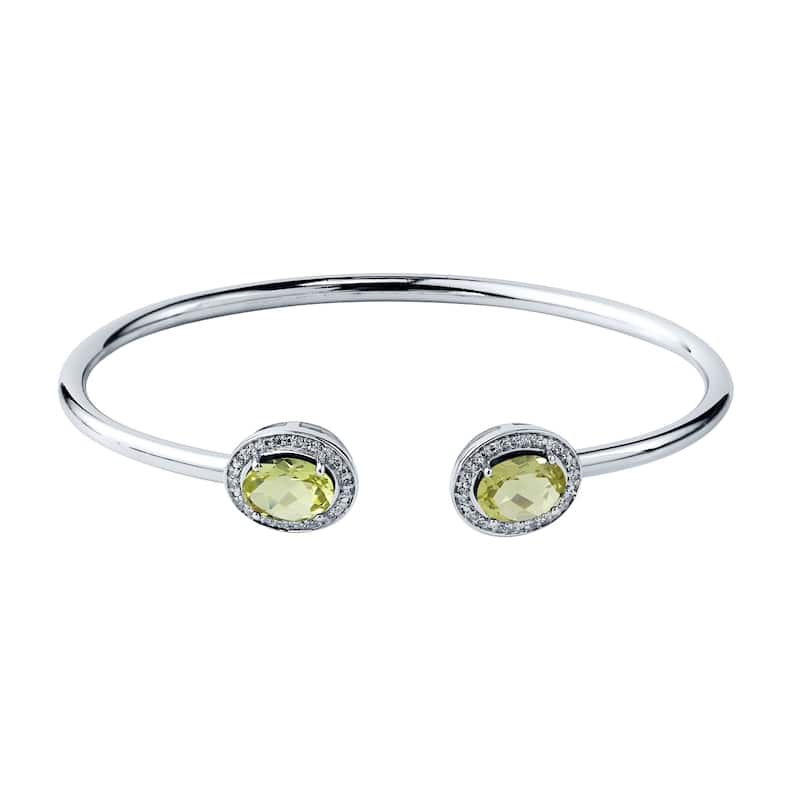 Auriya 2ct Oval Natural Lemon Green Quartz Gold over Silver Bangle Bracelet with Diamond Accents