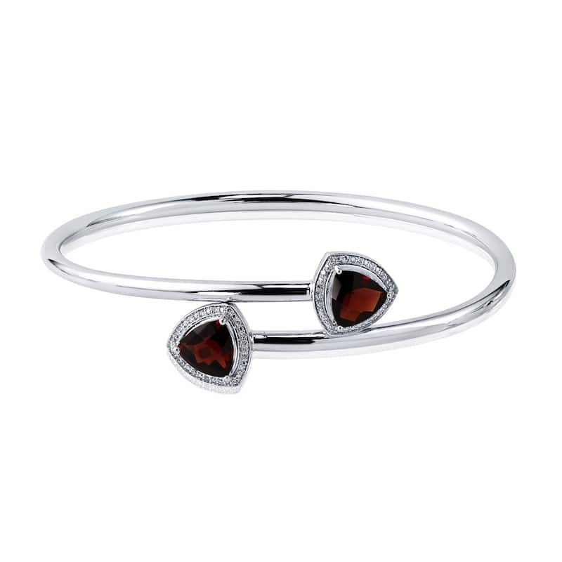 Auriya 3 3/4ct Trillion-Cut Red Garnet Gold over Silver Bangle Bracelet with Diamond Accents
