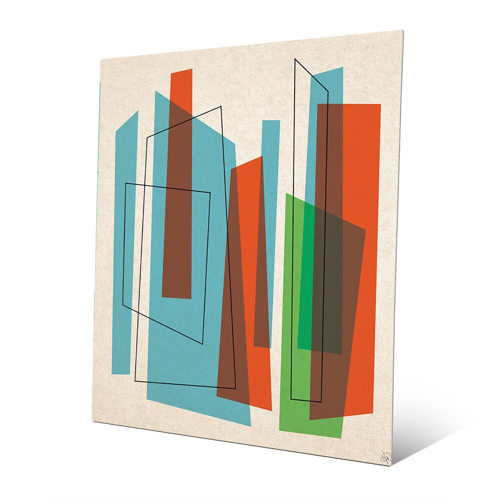 Broken Skyscrapers Blue and Green Metal Wall Art