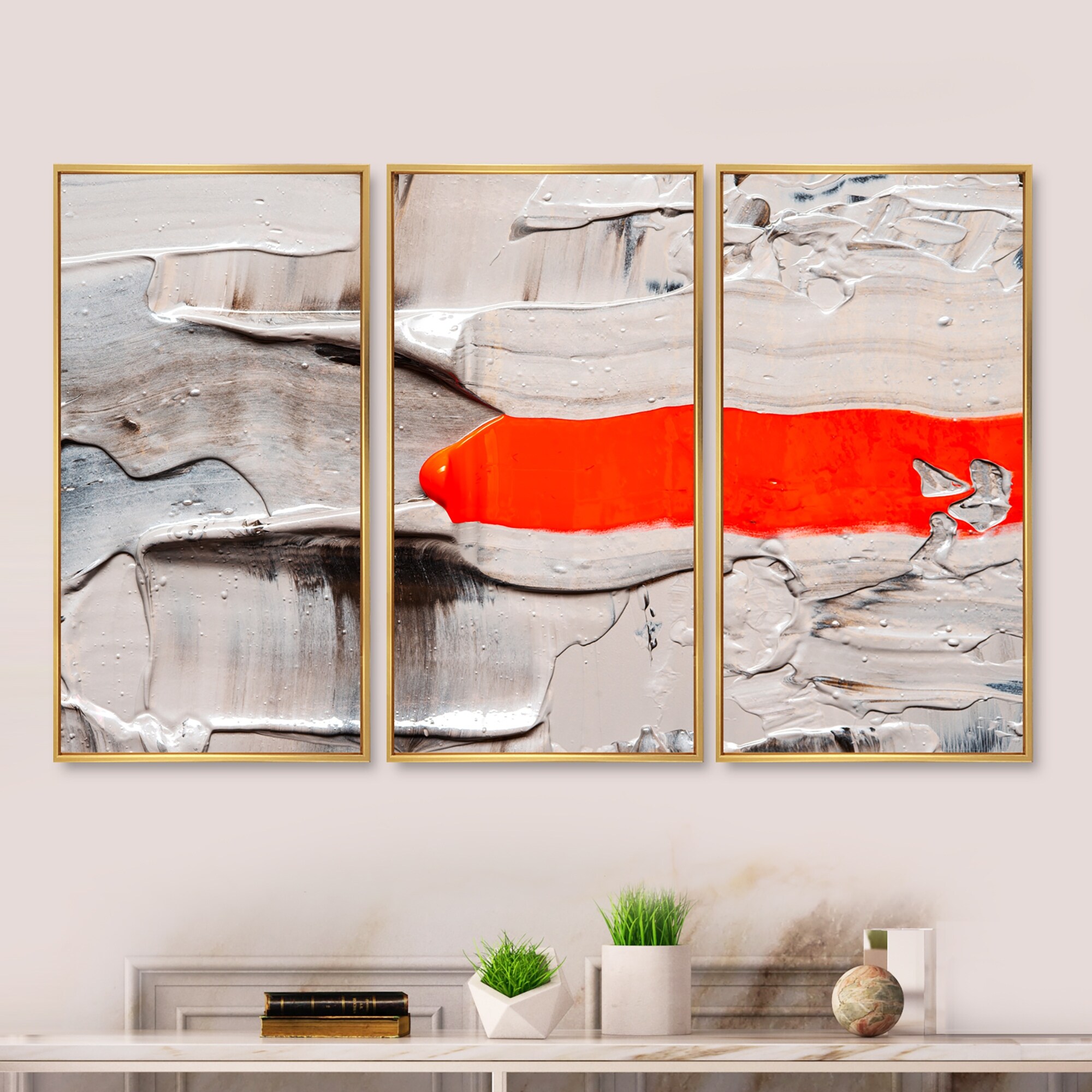 Designart "Red Wave on Broken White Background" Modern & Contemporary Framed Wall Art Set of 3 - 4 Colors of Frames