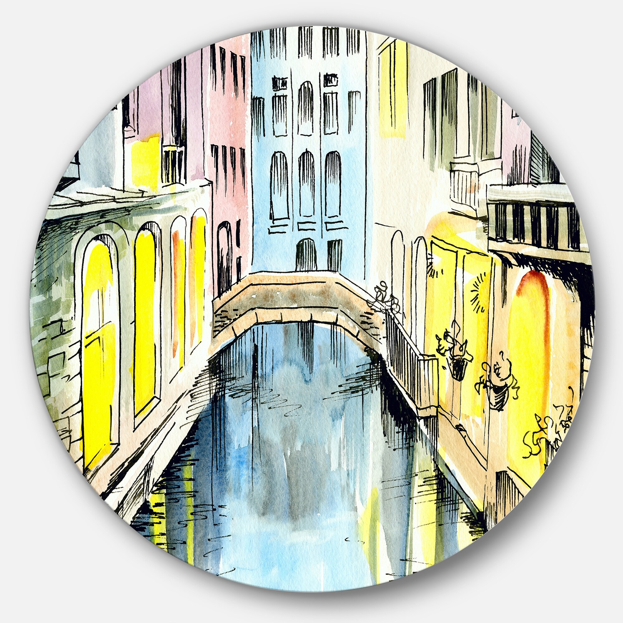 Designart 'Canal In Venice' Cityscape Glossy Metal Wall Art