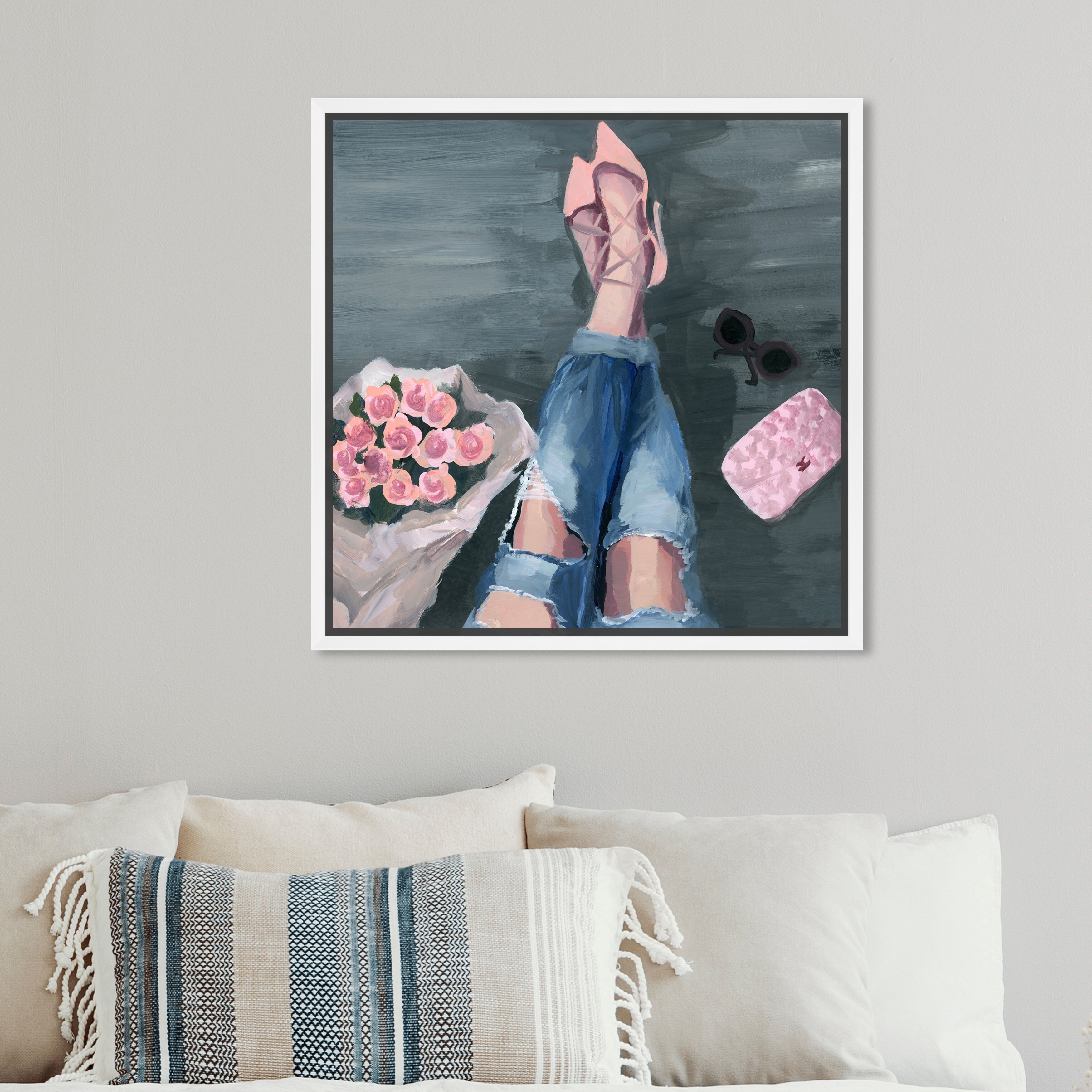 Oliver Gal Fashion and Glam Wall Art Framed Canvas Prints 'Waiting For You' Shoes - Pink, Gray
