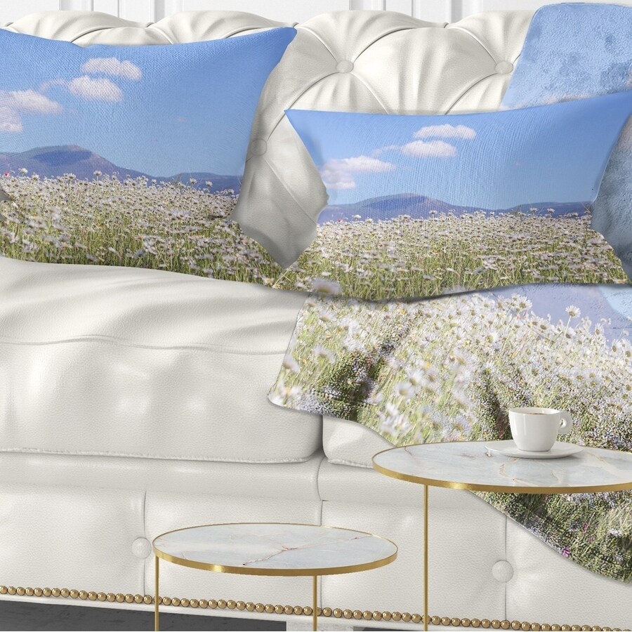 Designart 'Blooming Chamomiles Flowers' Landscape Printed Throw Pillow