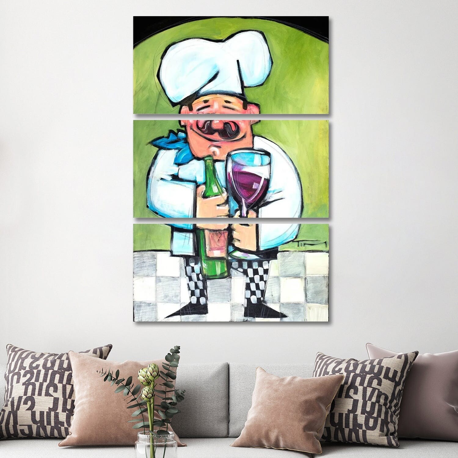 iCanvas "Chef With Wine A" by Tim Nyberg 3-Piece Canvas Wall Art Set
