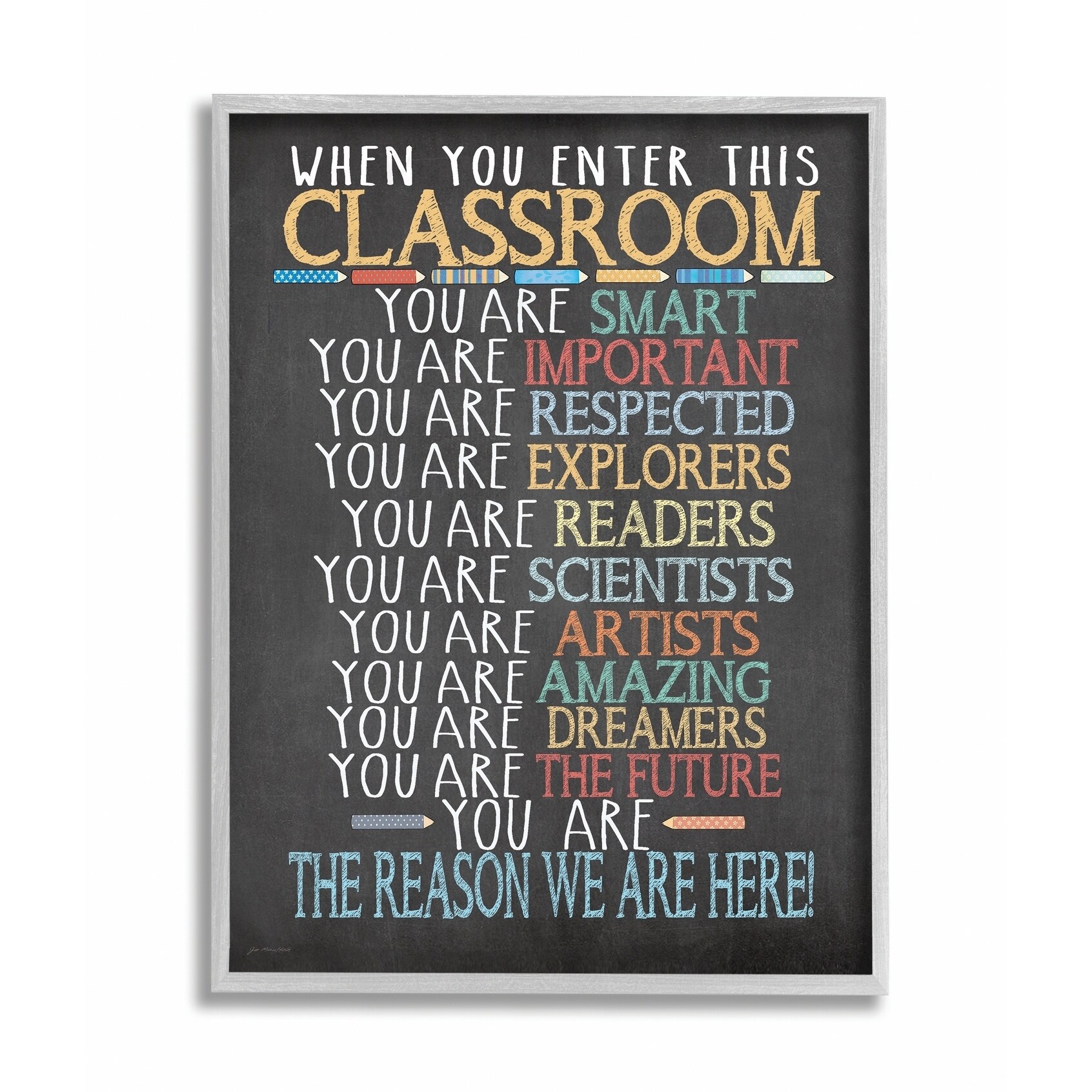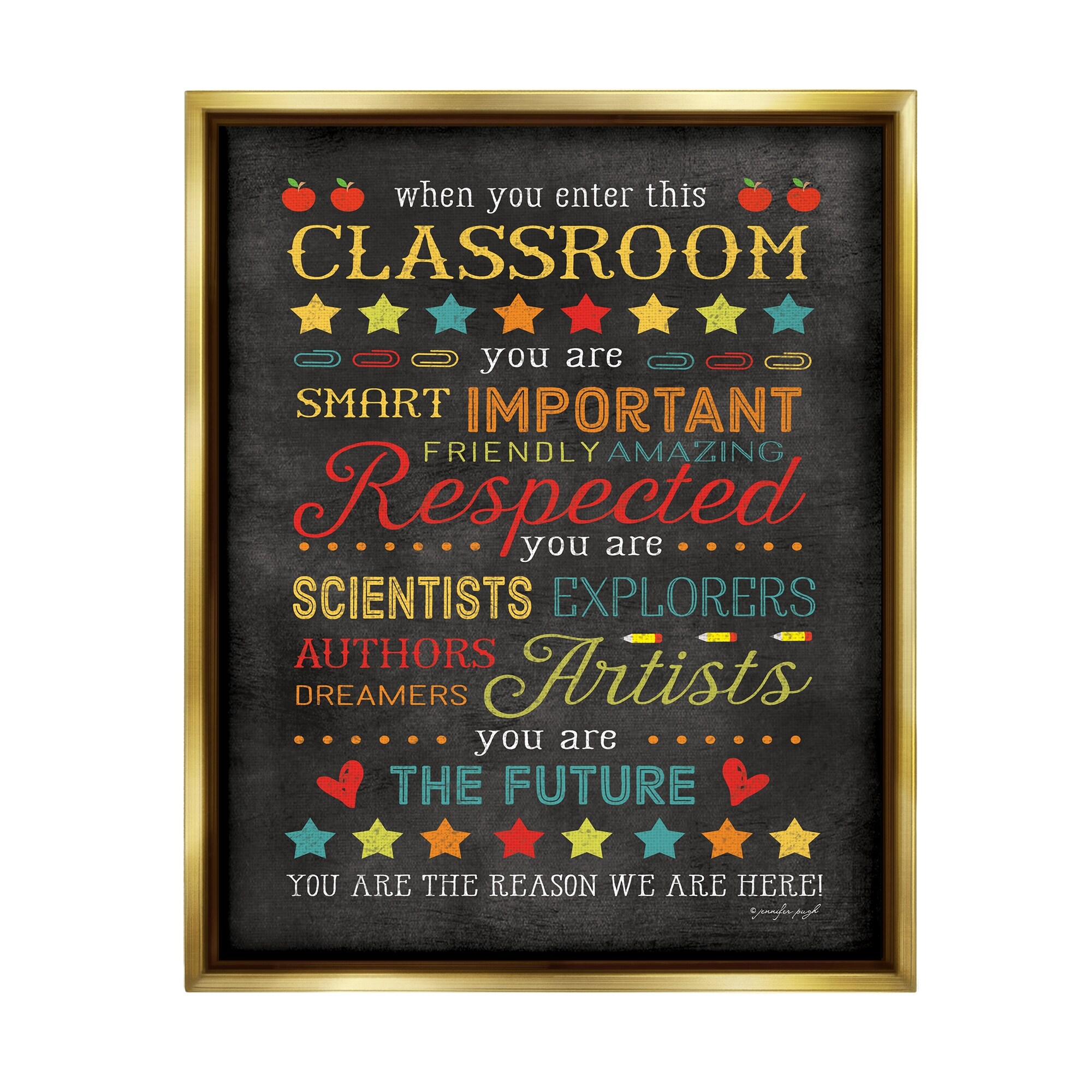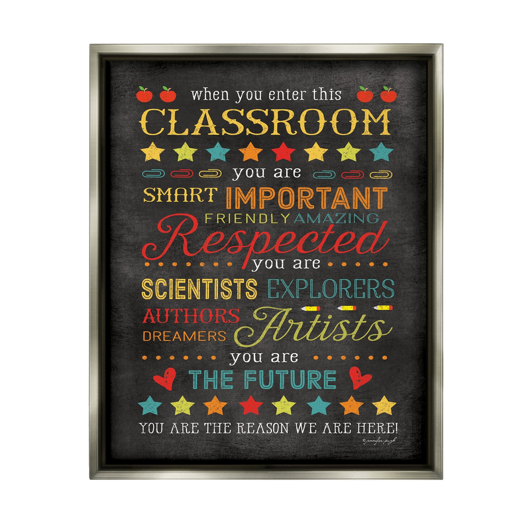 Stupell Industries the Reason We Are Here Classroom Sign Framed Floater Canvas Wall Art by Jennifer Pugh