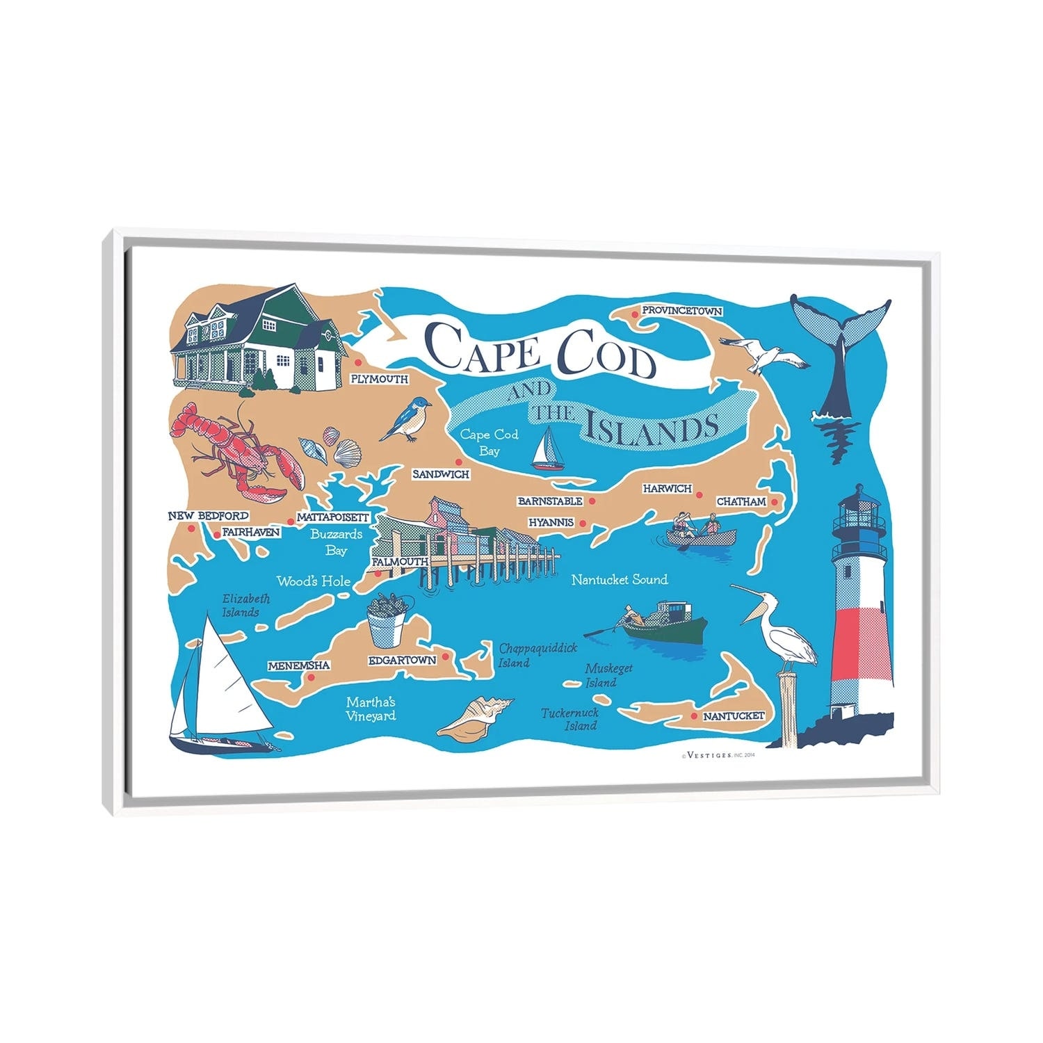 iCanvas "Cape Cod And Islands Map" by Sarah Hayden Framed|Go