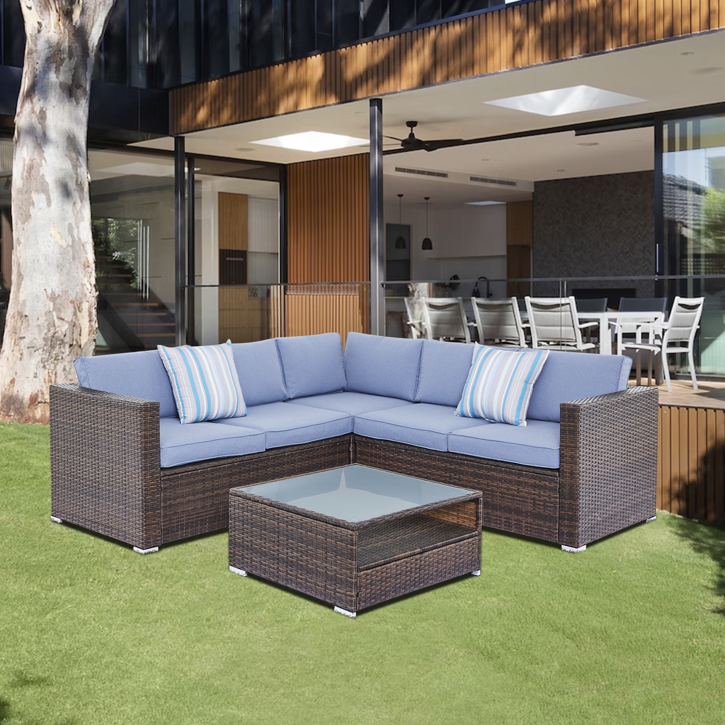 Patio 4 piece sectional low dining conversation sofa set
