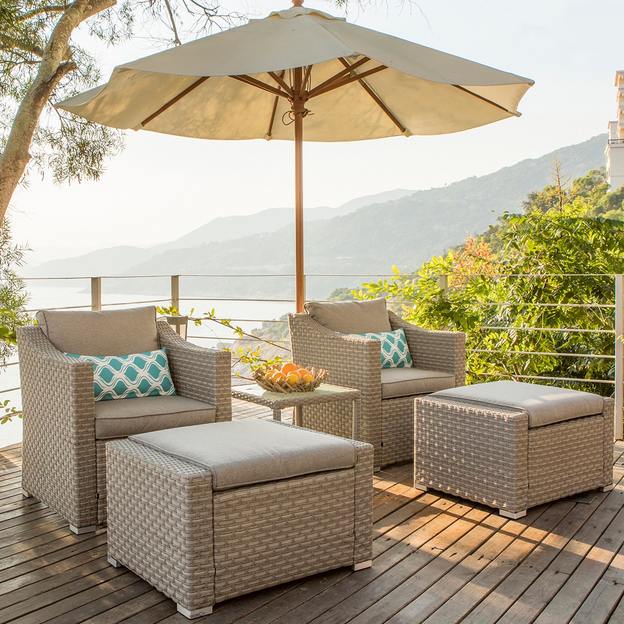 COSIEST 5-piece Outdoor Patio Wicker Conversation Sofa Set