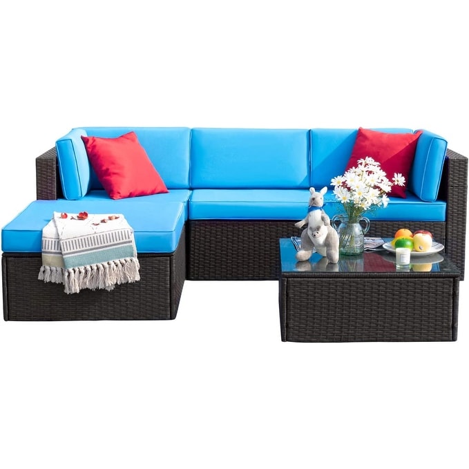 Furniwell 5 Pieces Patio Sectional Sofa Sets Rattan Conversation Sets