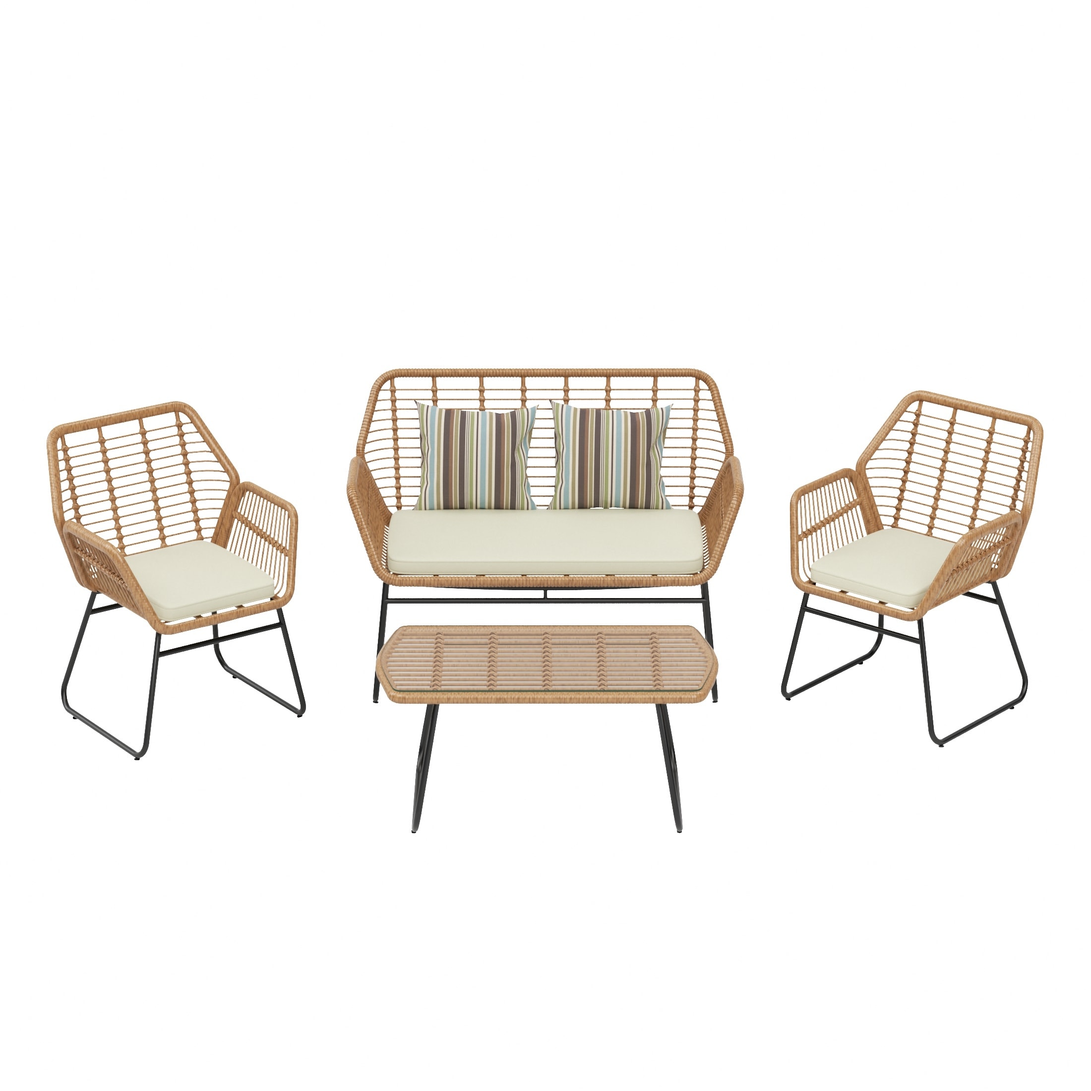 Arden 4-Piece Outdoor Wicker Patio Conversation Set with Cushions