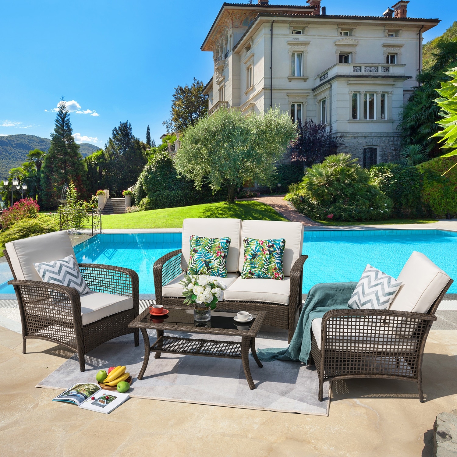 Nuu Garden 4PCS Patio Wicker Sofa Conversation set
