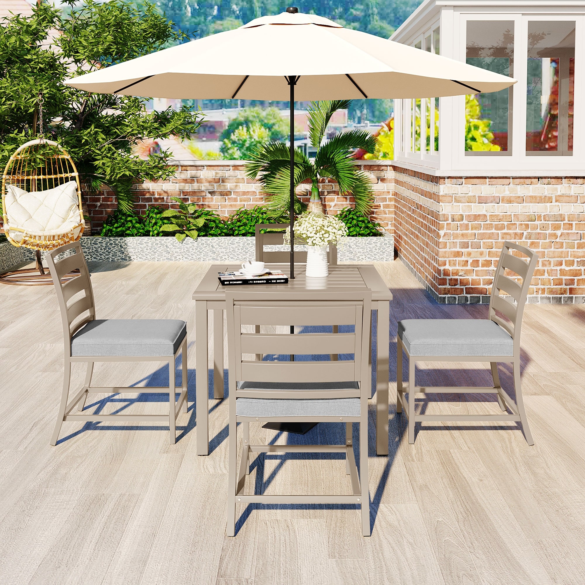 4 Pcs Patio Dining Sets Patio Conversation Sets with Umbrella Hole