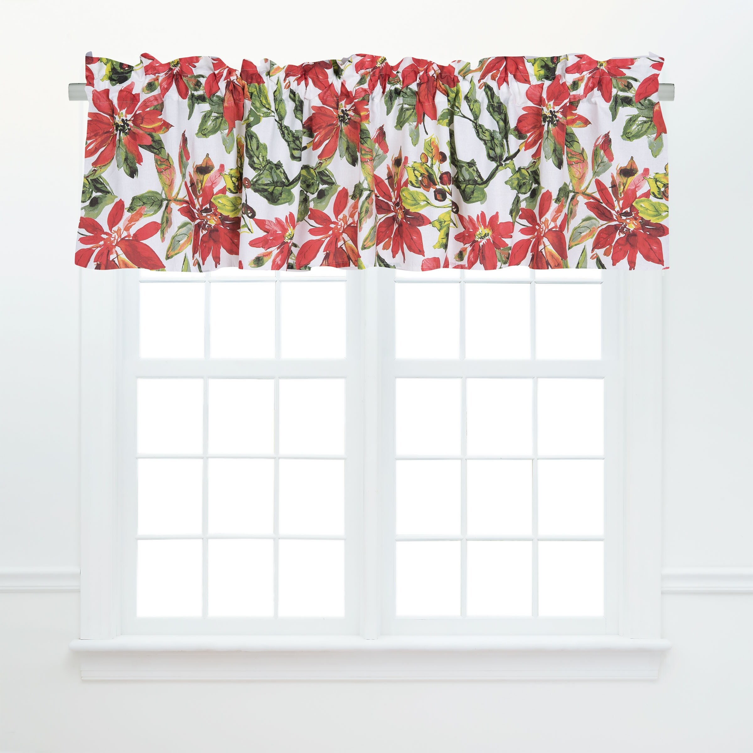 Poinsettia Berries Cotton Red Valance Window Treatment Set of 2