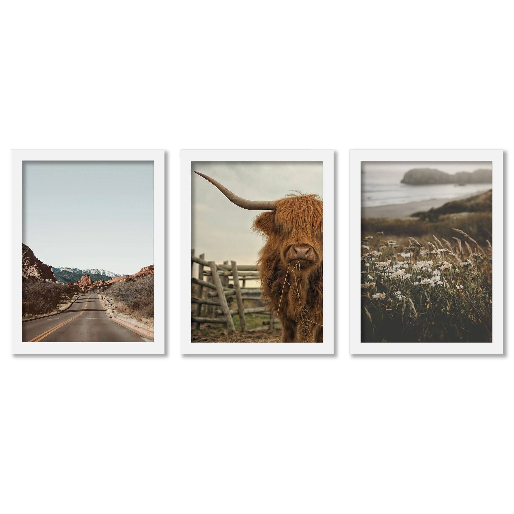 Cow Meadow Tanya Shumkina Contemporary - 3 Piece Framed Gallery Art Set