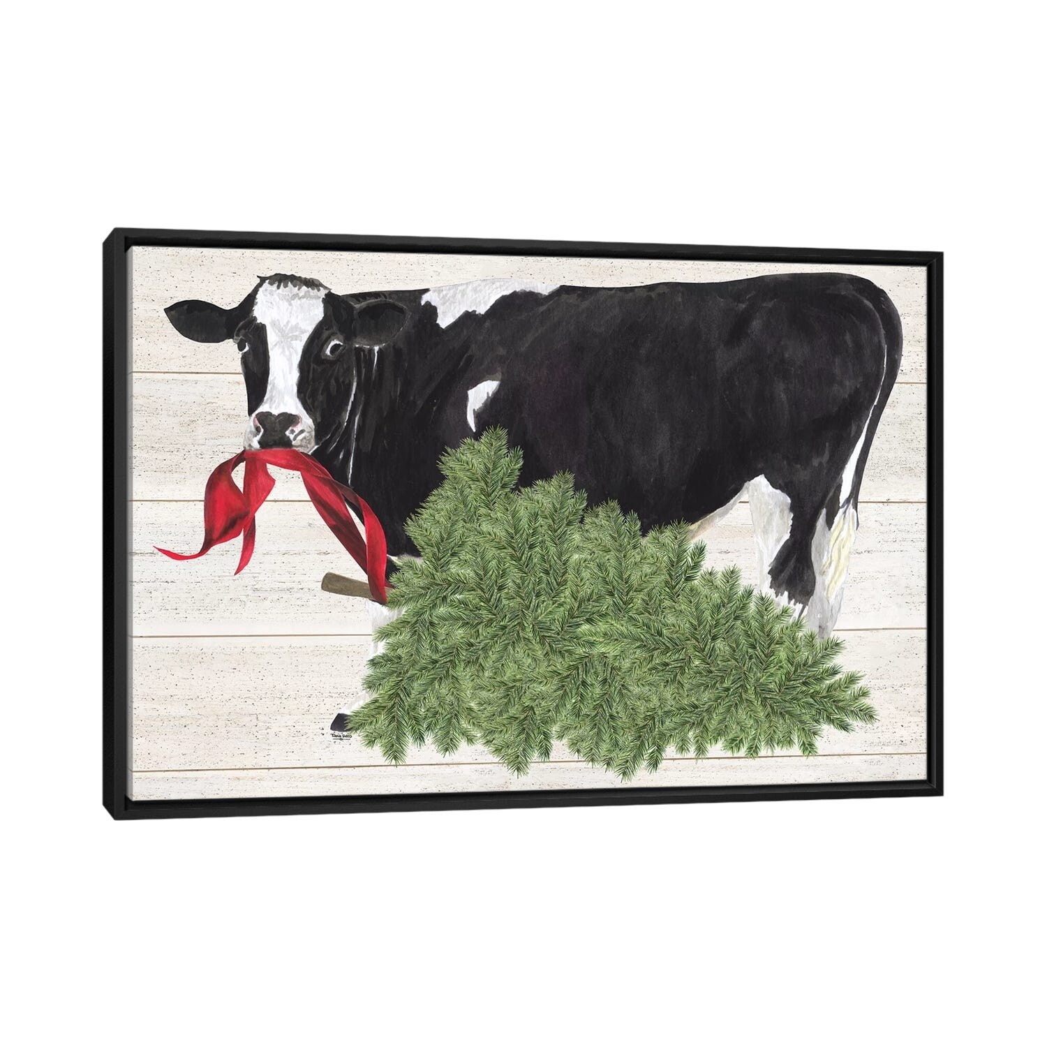 iCanvas "Christmas On the Farm II - Cow with Tree" by Tara Reed Framed Canvas Print