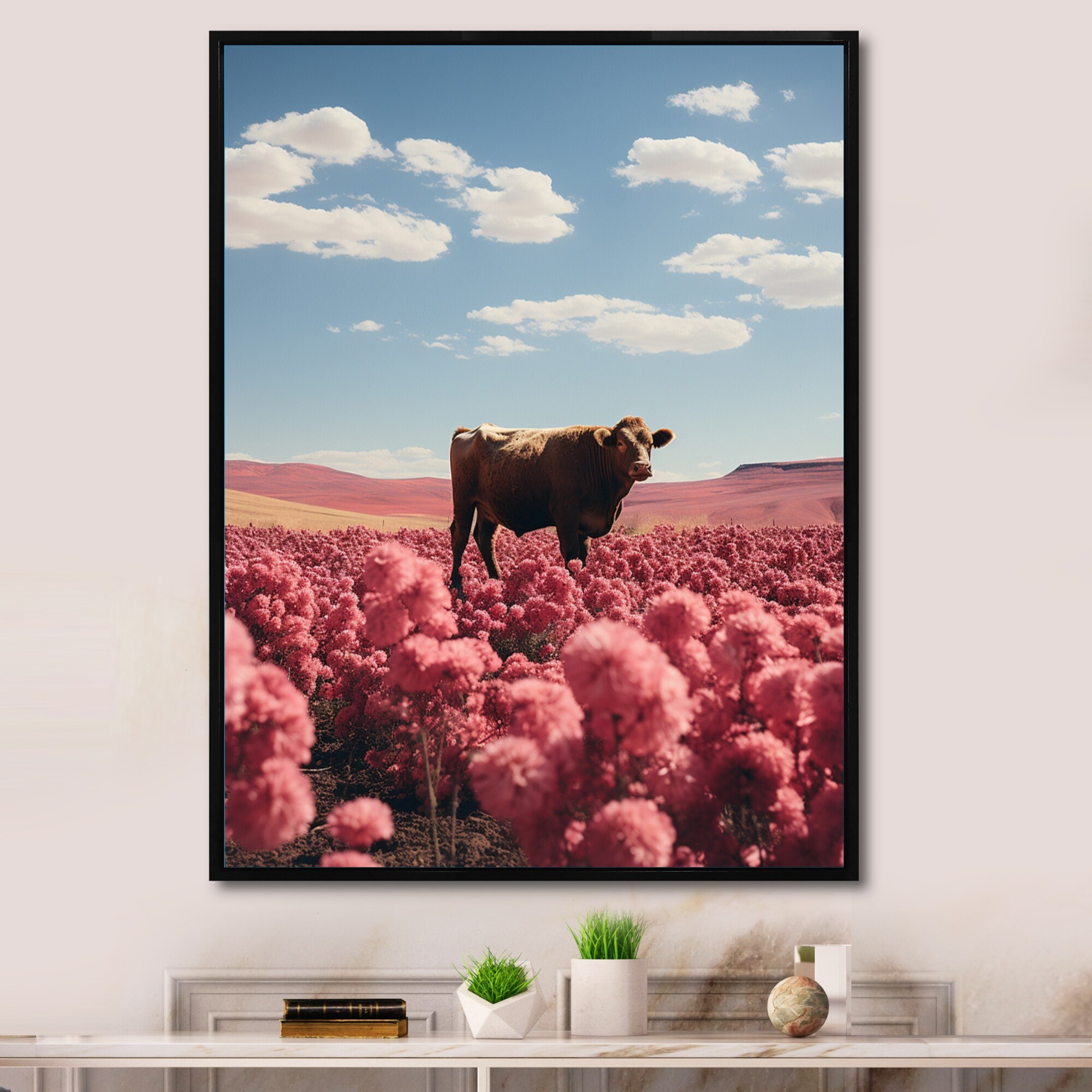 Designart "Cow Petals Field II" Animals Cow Framed Canvas Wall Art