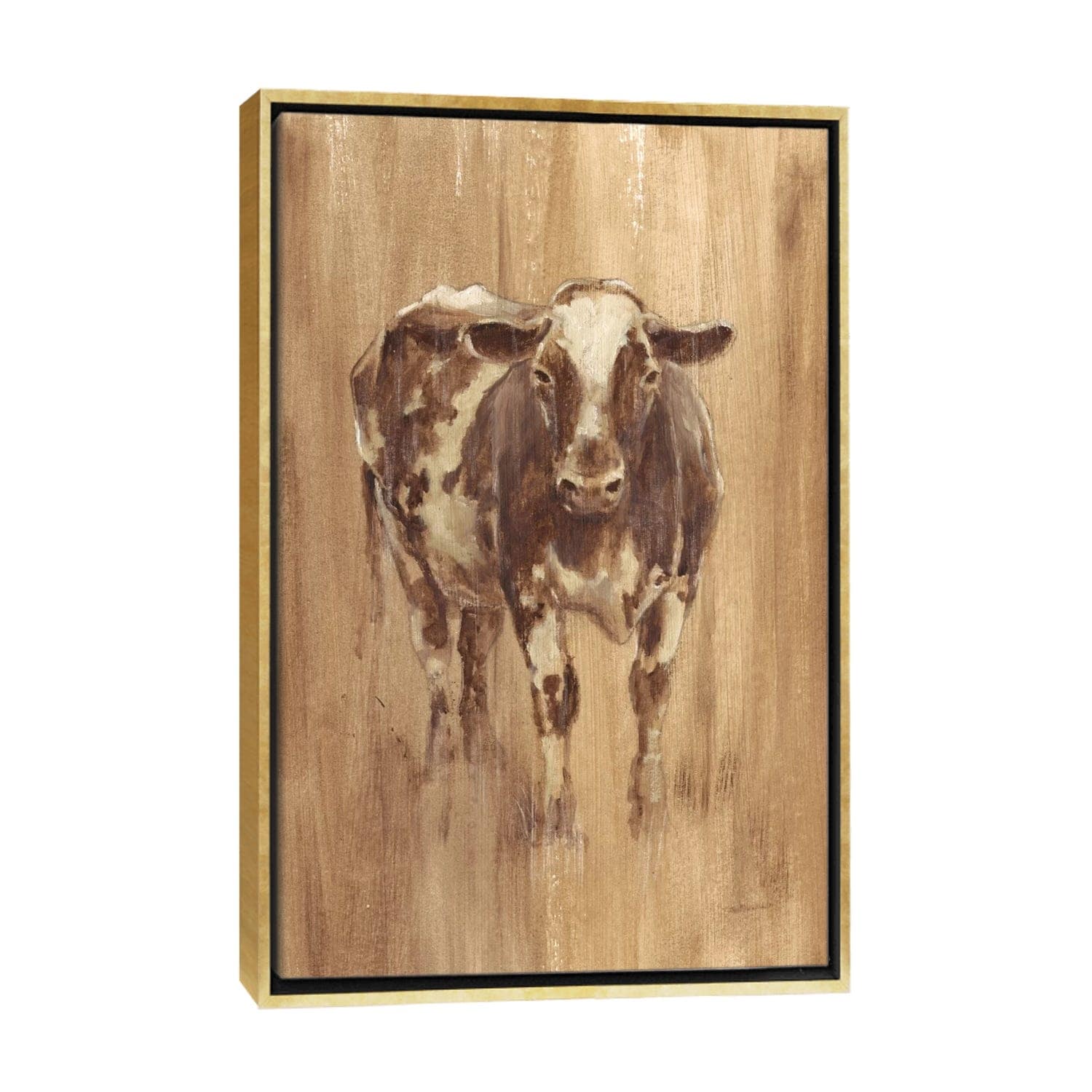 iCanvas "Wood Panel Cow" by Ethan Harper Framed