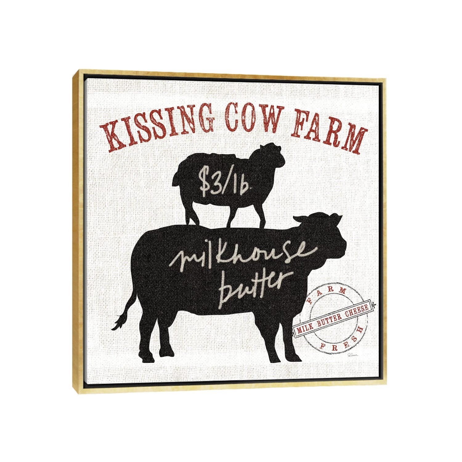 iCanvas "Farm Linen Cow" by Sue Schlabach Framed