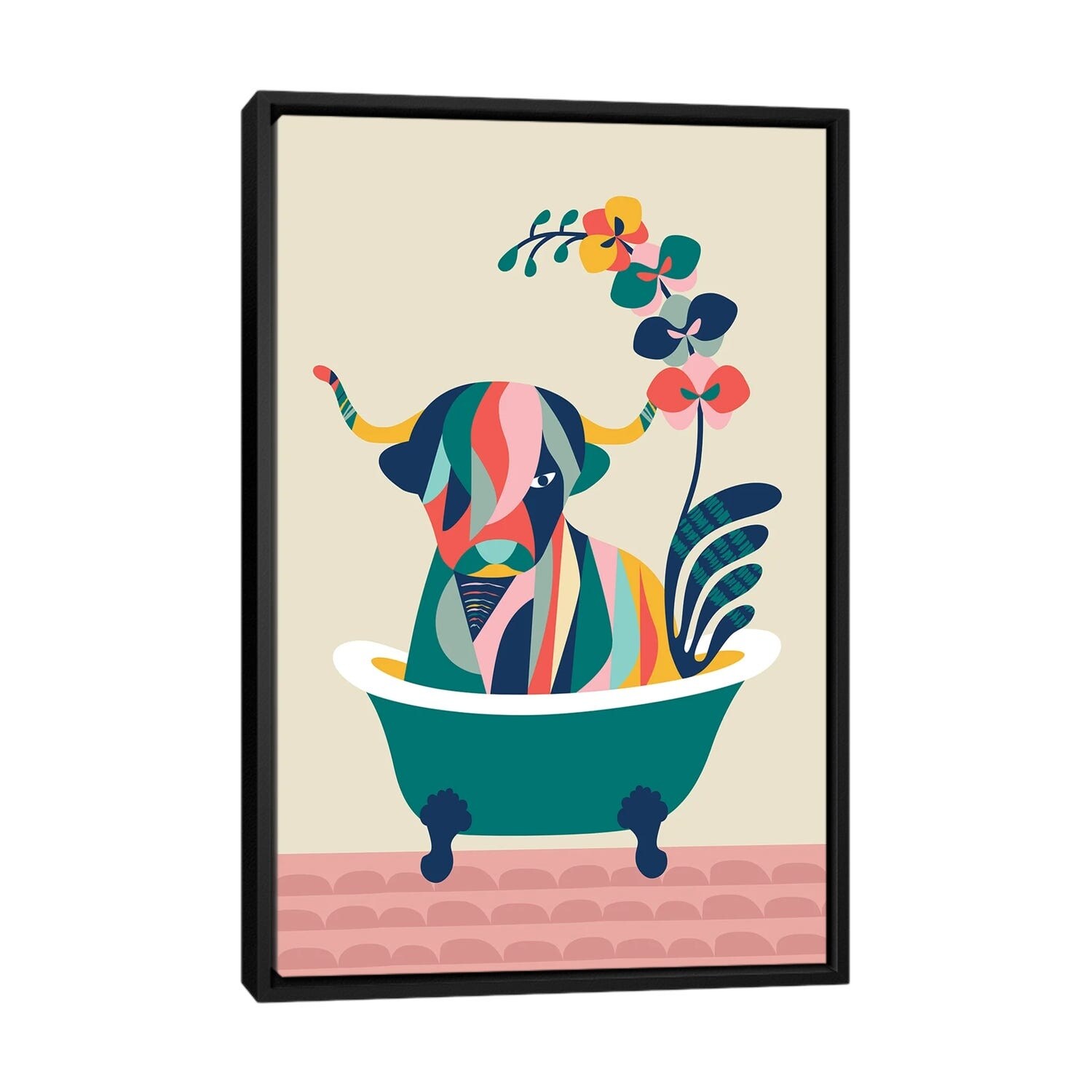 iCanvas "Mid-Century Cow in Bathtub" by Rachel Lee Framed Canvas Print