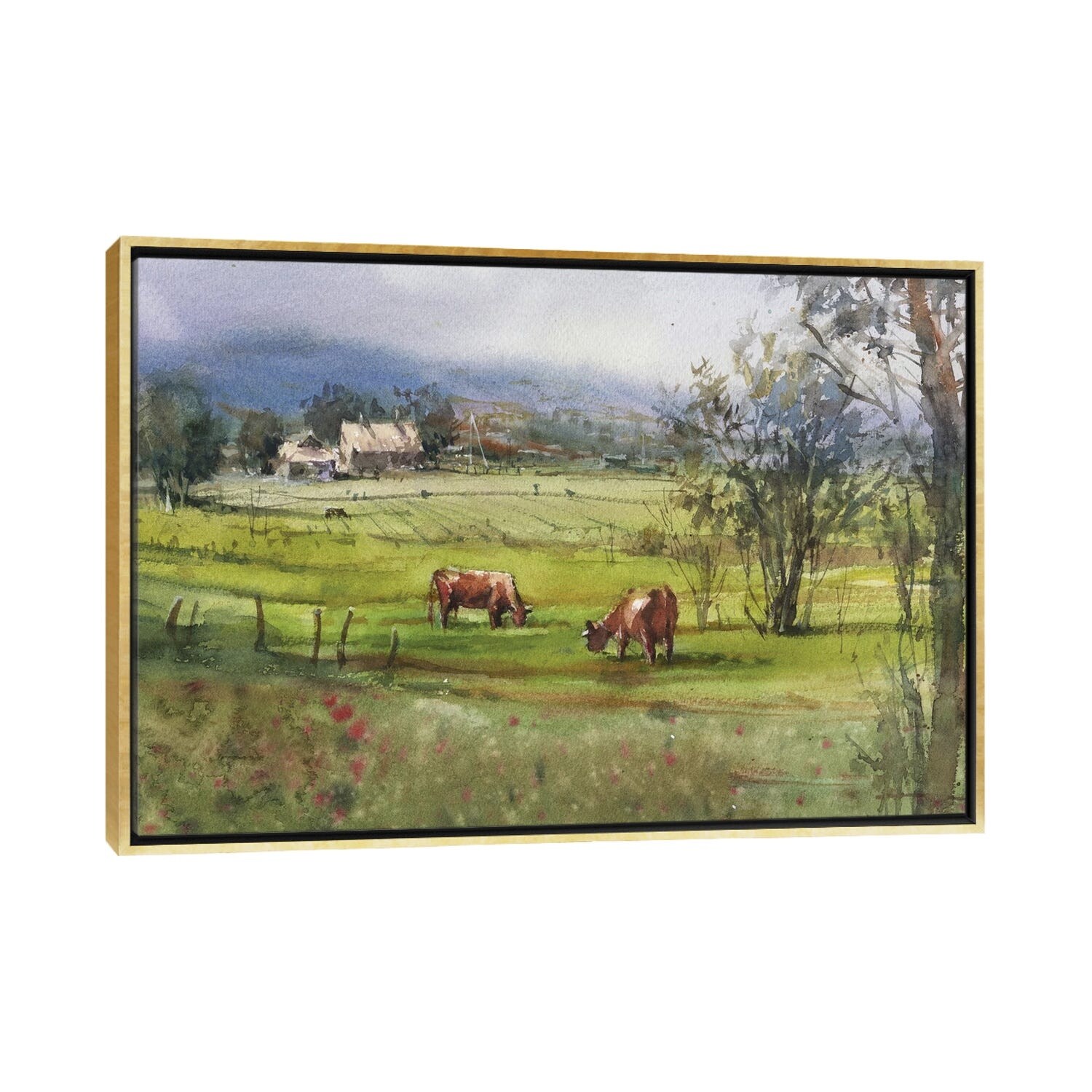 iCanvas "Meadow With Cows" by Samira Yanushkova Framed