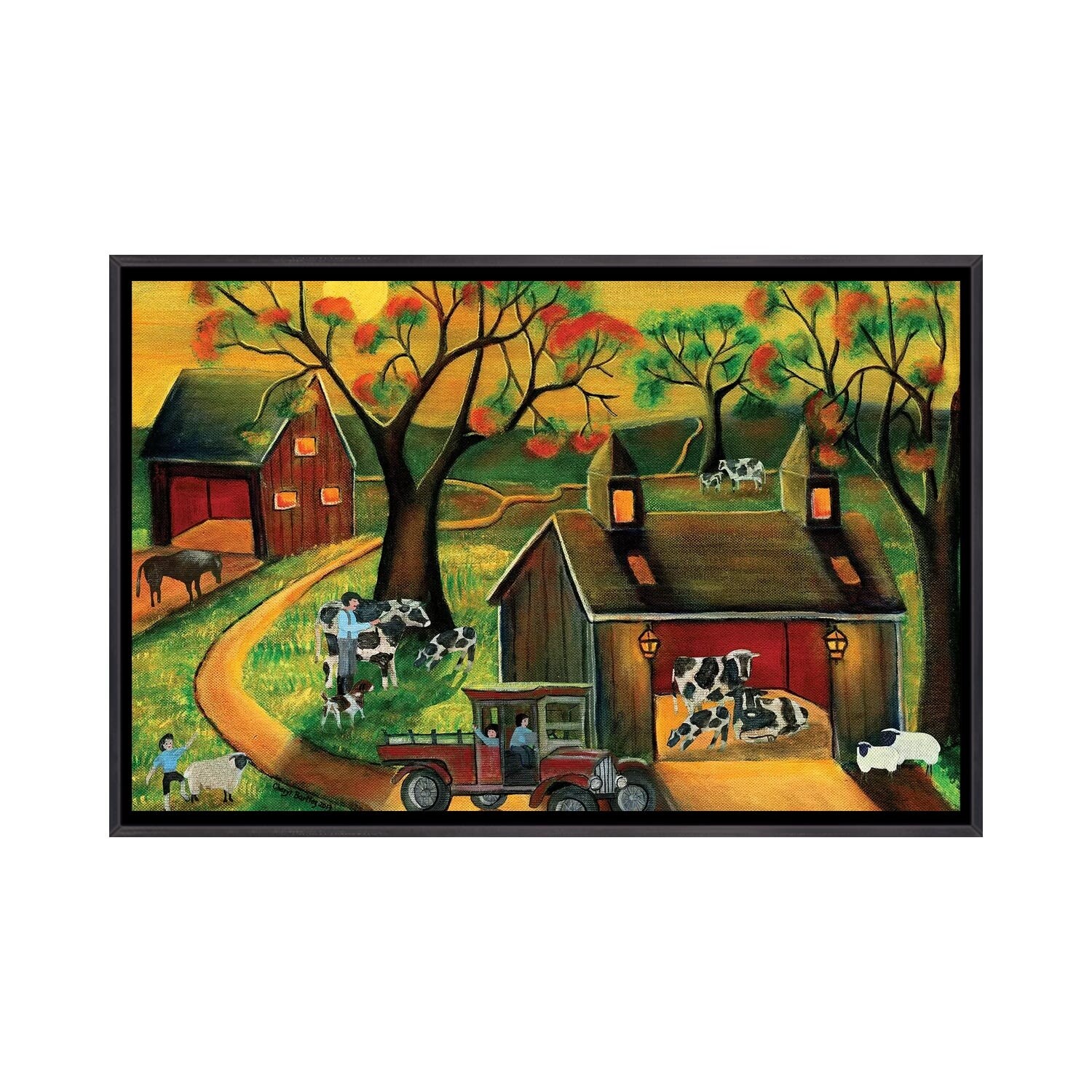 iCanvas "Sunrise Autumn Cow and Sheep Barnyard" by Cheryl Bartley Framed