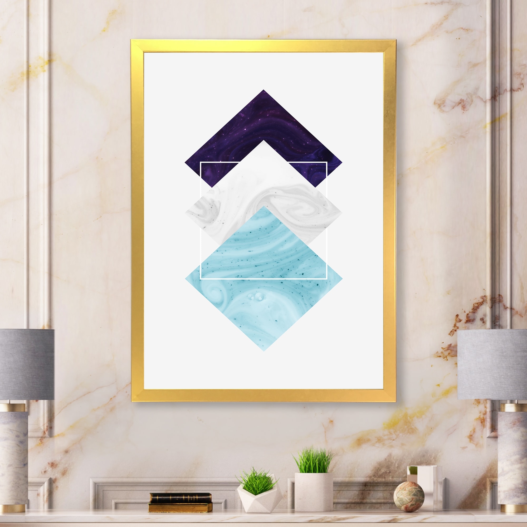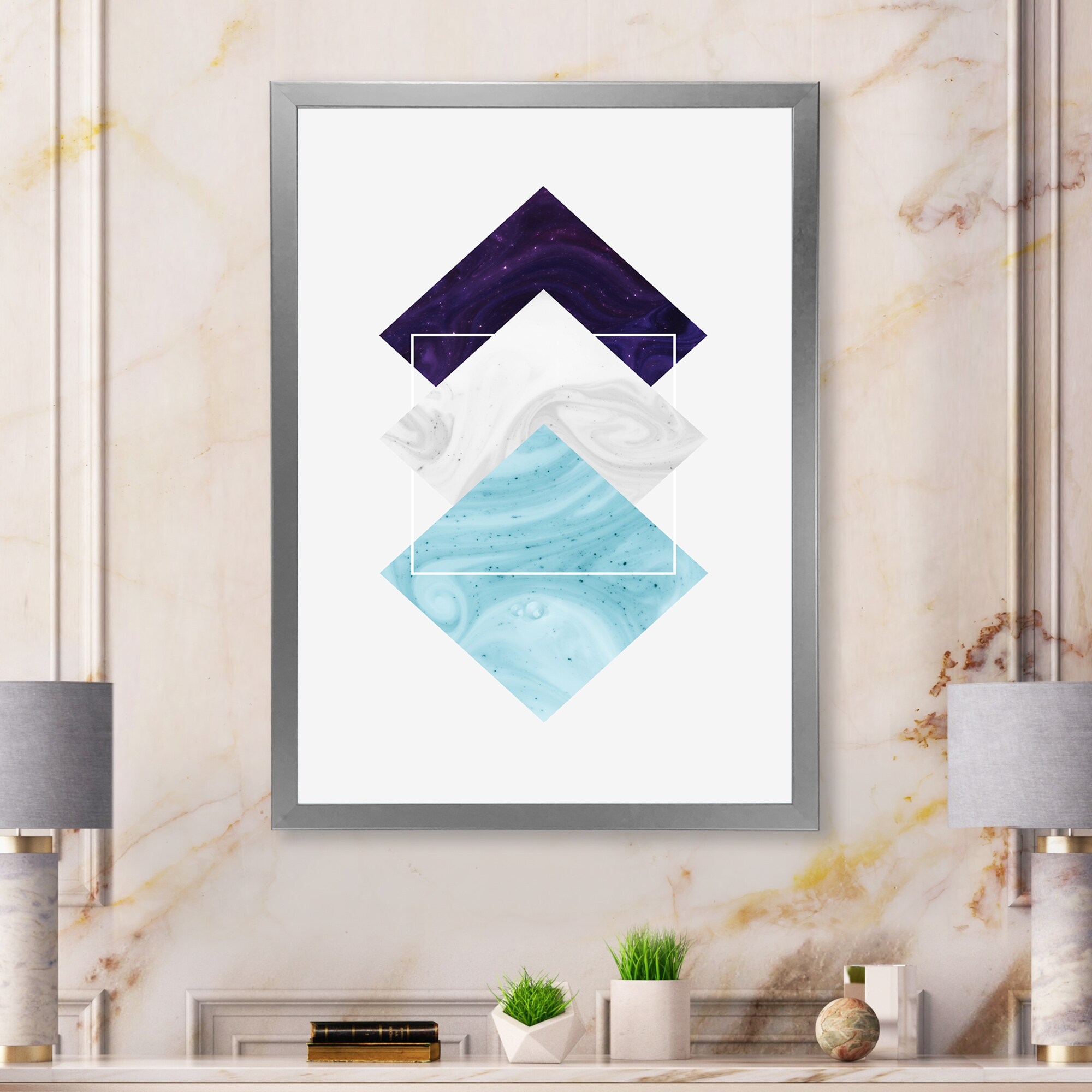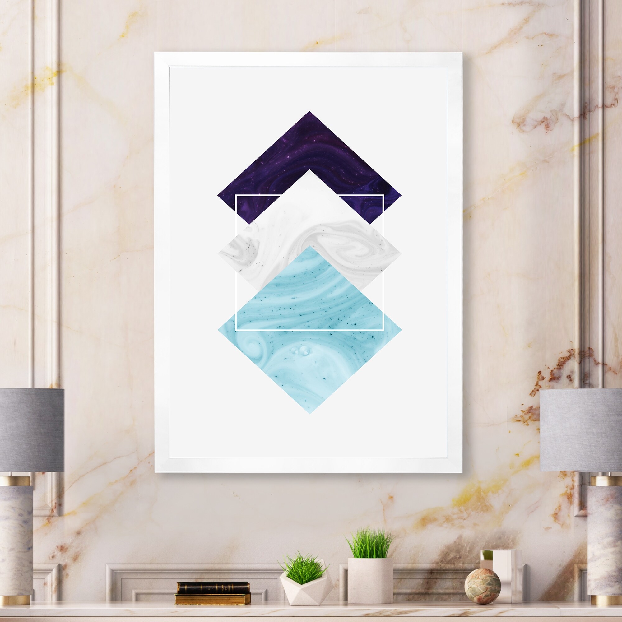 Designart "Create Design White Blue" Abstract Framed Canvas artwork