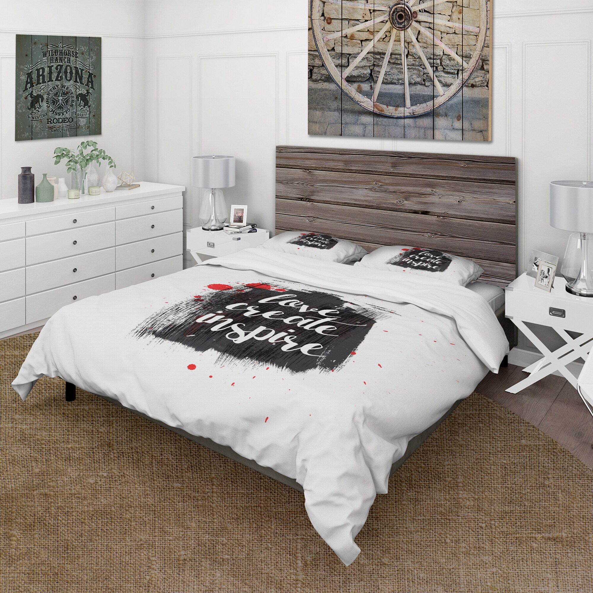 Designart 'Love Create Inspire' Traditional Duvet Cover Set