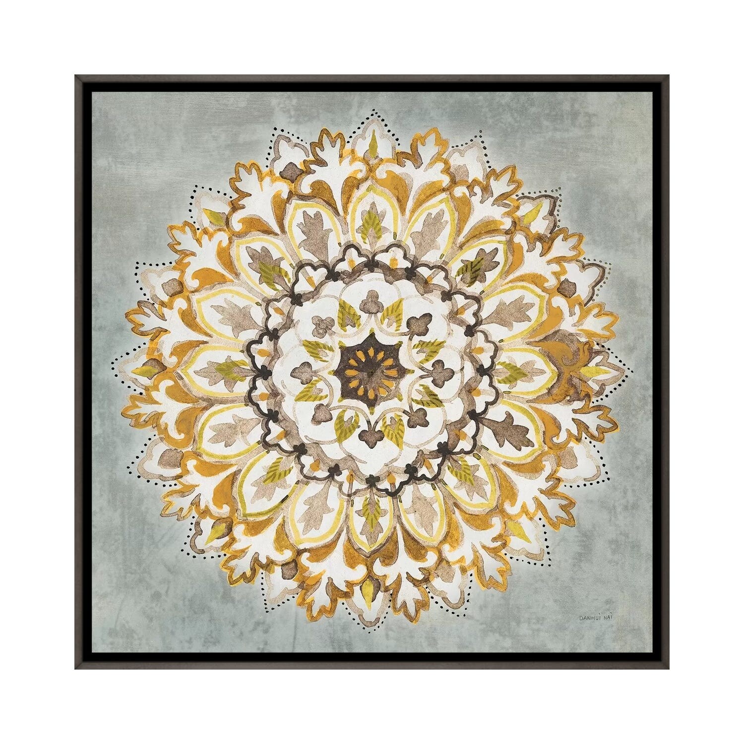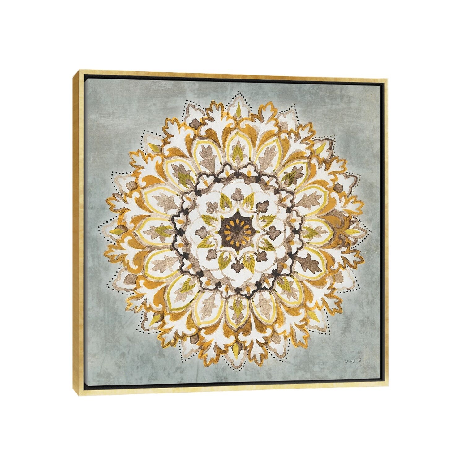 iCanvas "Mandala Delight II Yellow Gray" by Danhui Nai Framed Canvas Print