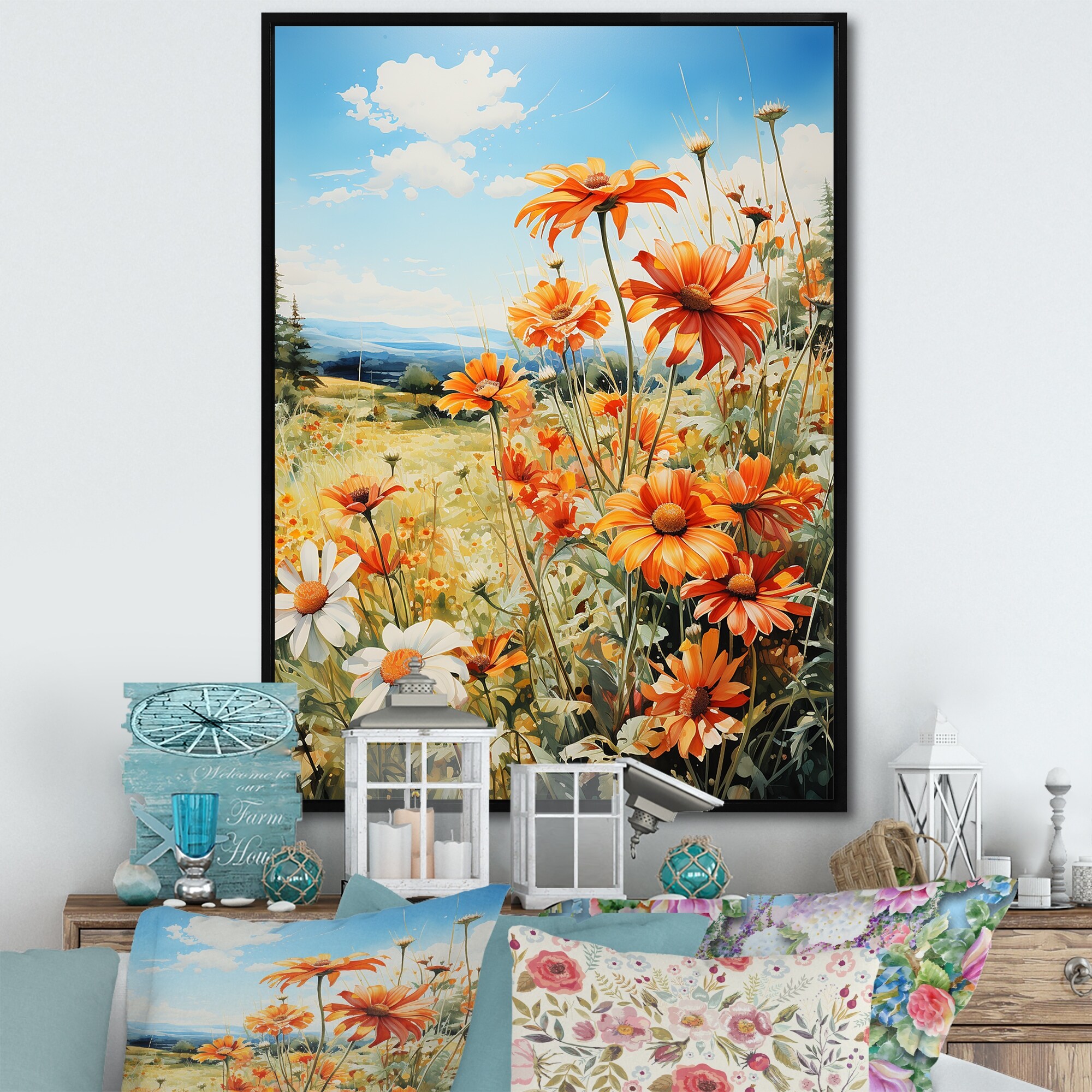 Designart "Meadow Daisy Delight" Meadow Framed Canvas Art Print