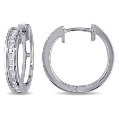 Miadora Sterling Silver 1/3ct TDW Baguette Cut Diamond Hoop Earrings