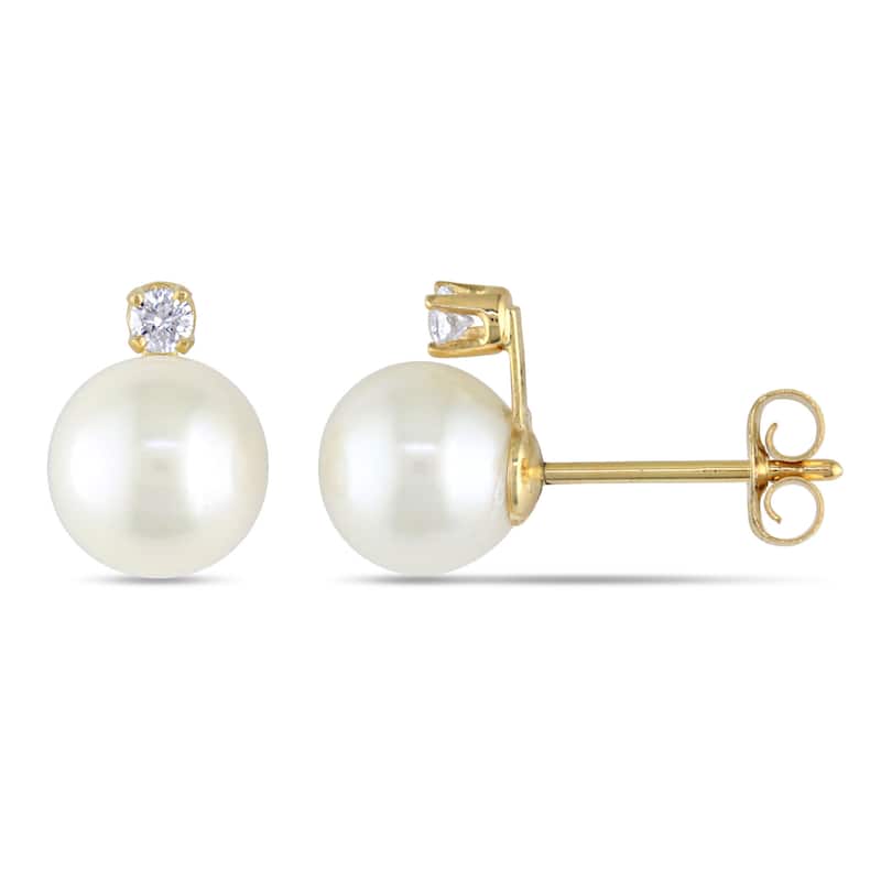 Miadora 14k Gold Cultured Pearl and 1/10ct TDW Diamond Earrings (8-9 mm)