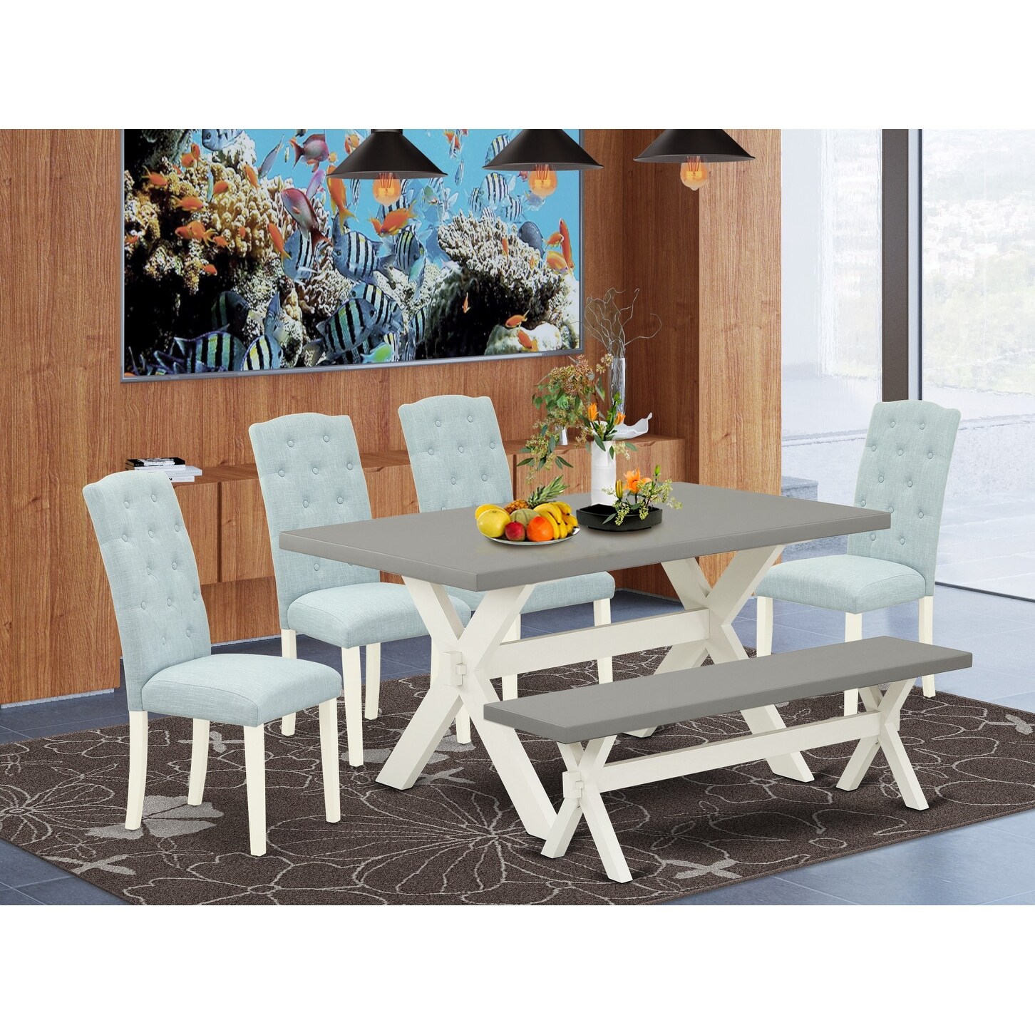 Dining Room Table Set - a Rectangular Table with Dining Parson Chairs - Linen White Finish (No. of Chairs & Bench Options)