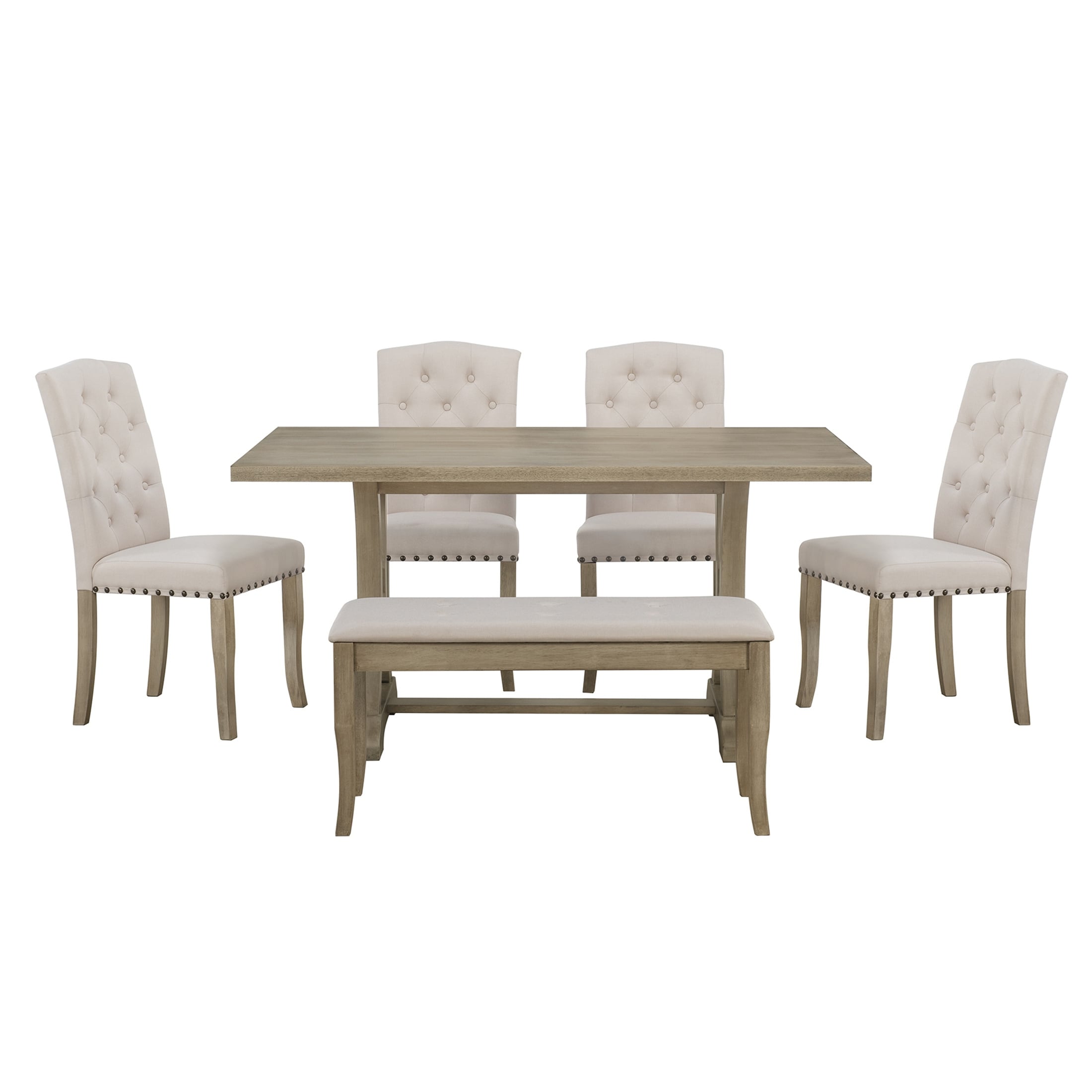 6-Piece Rustic Upholstered Dining Room Table Set with 4 Chairs&1 Bench