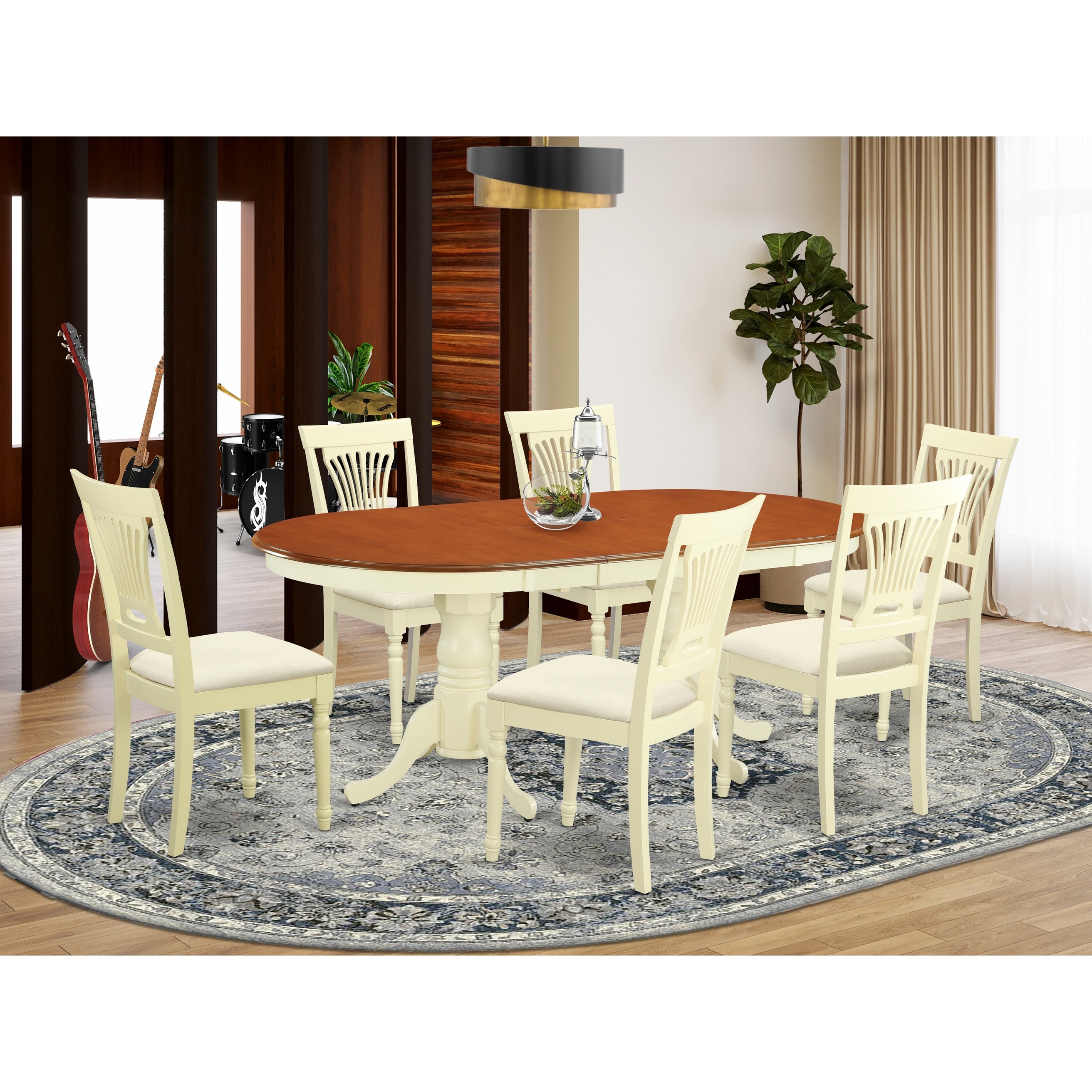 Dining Set Included Double Pedestal Table and Dining Room Chairs - Buttermilk and Cherry Finish (Seat's Type Options)