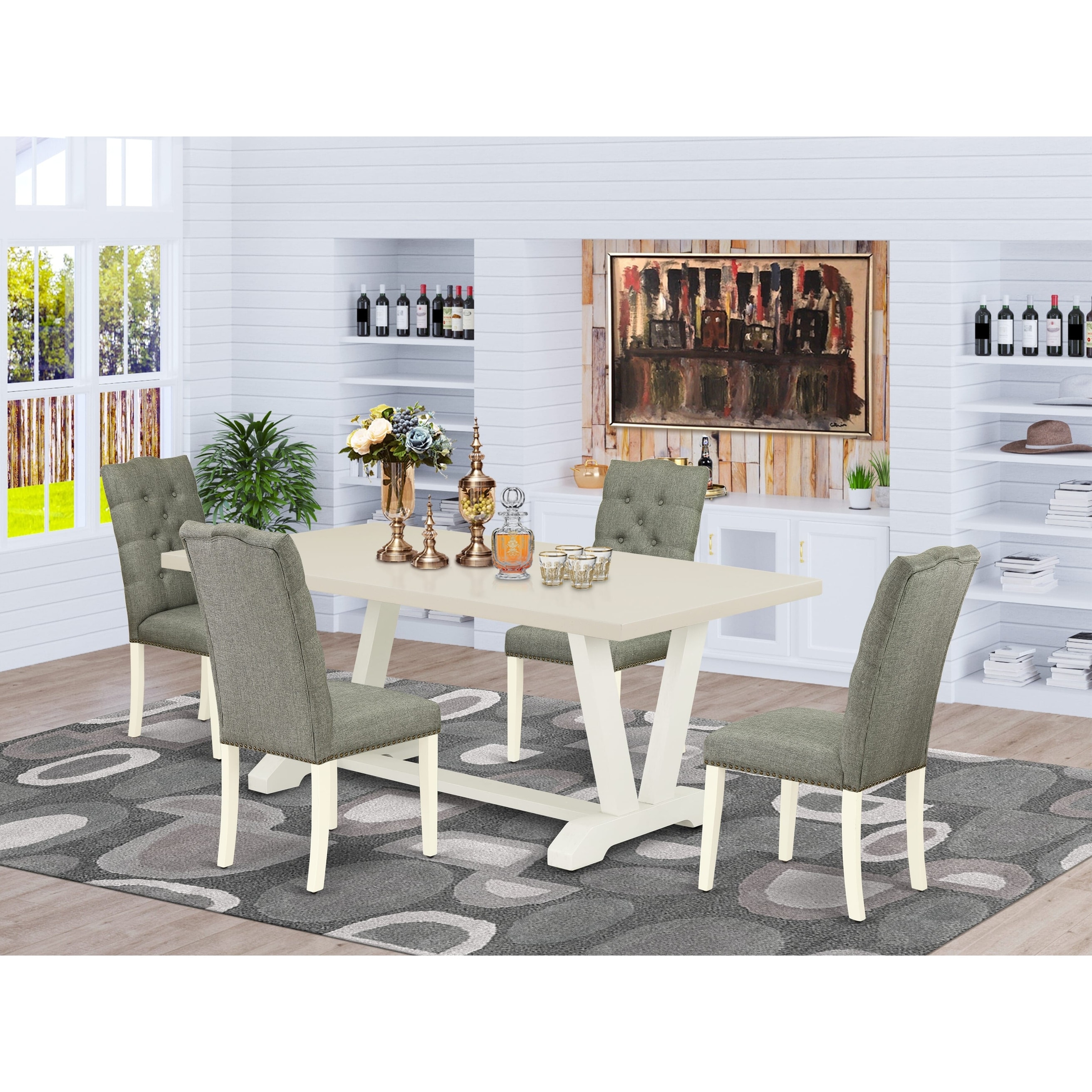 Dining Room Table Set - a Dining Table and Parson Chairs - Linen White Finish (No. of Chairs & Bench Options)