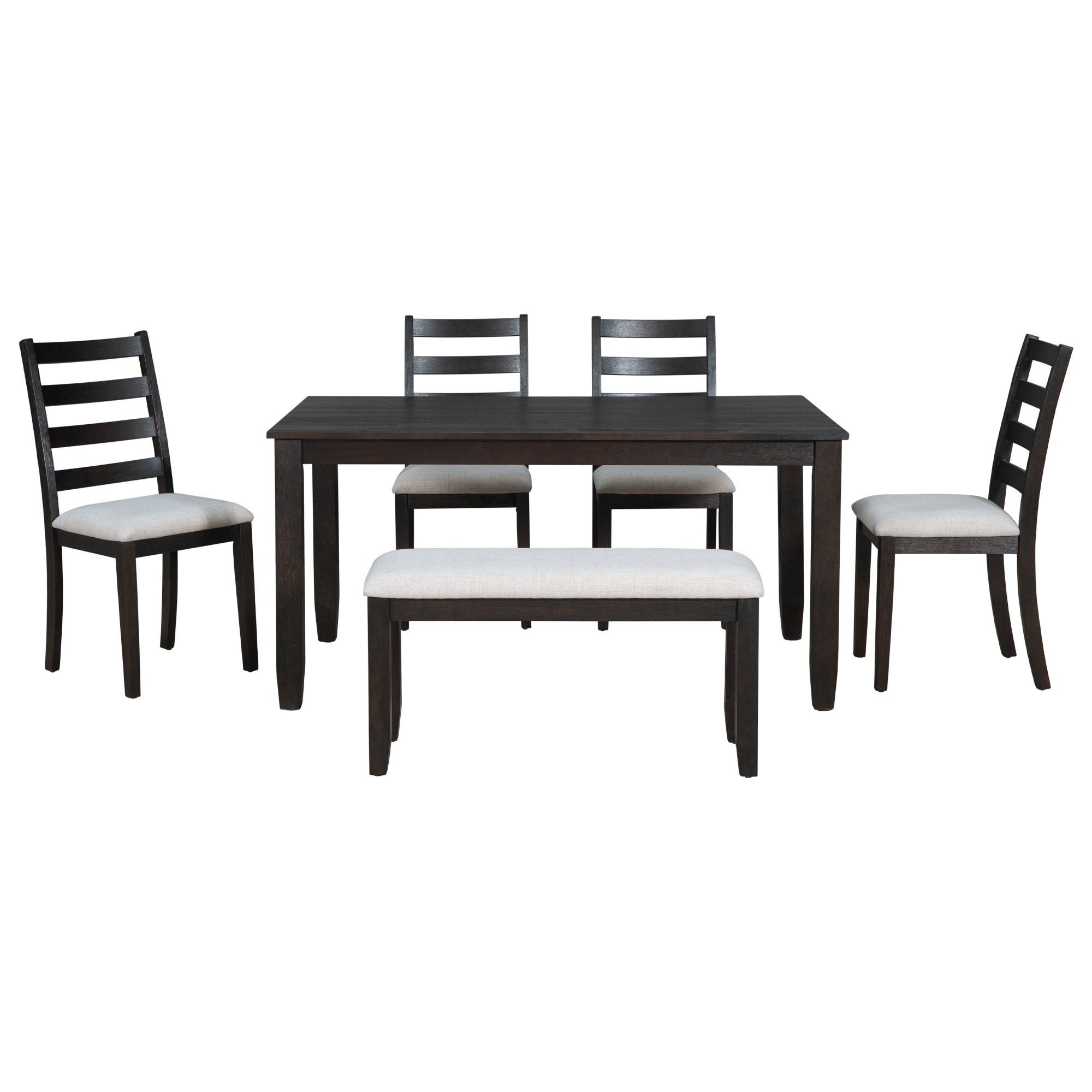 6-Piece Wooden Dining Set with Bench, Kitchen and Dining Room