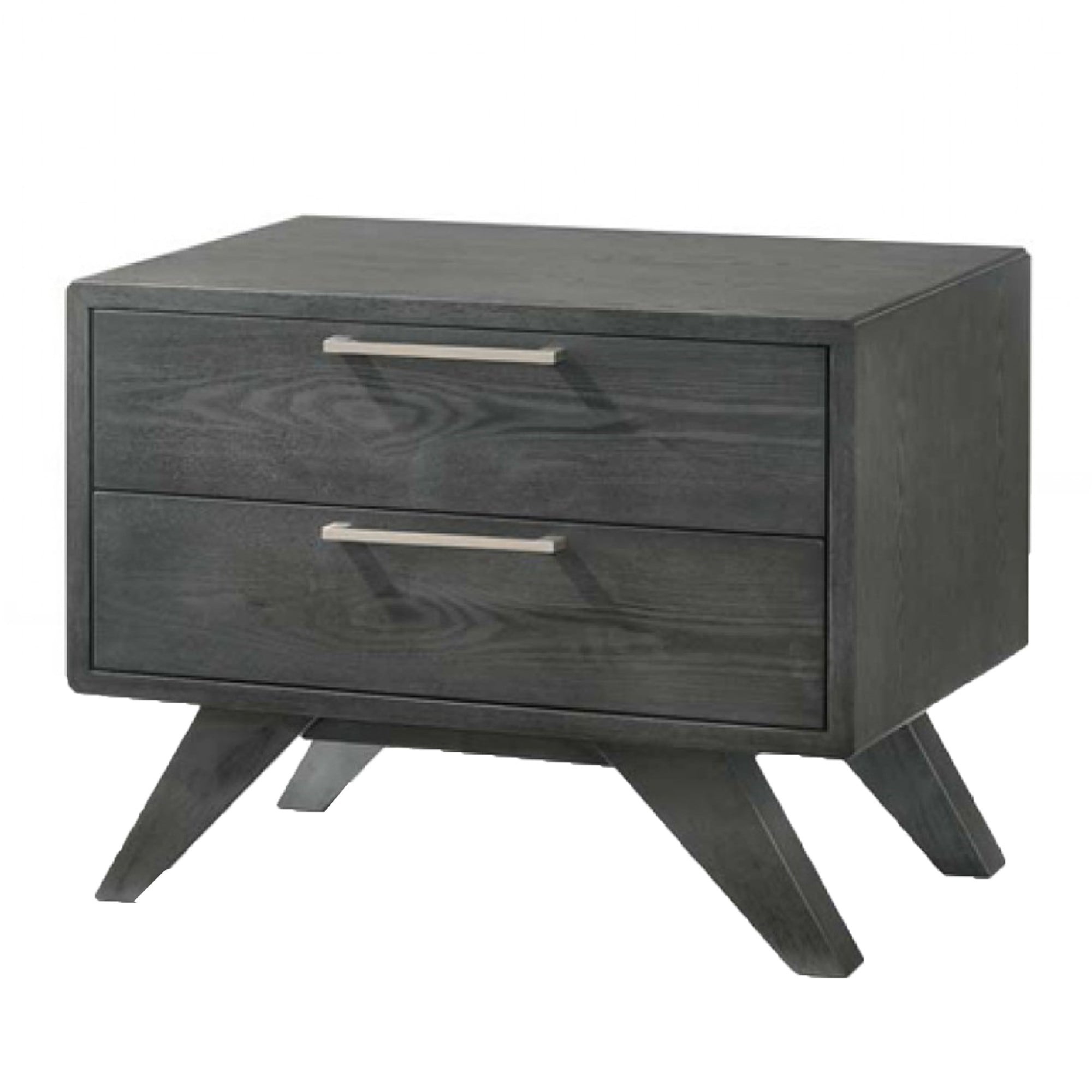 2 Drawer Wooden Nightstand with Slanted Tapered Legs, Gray