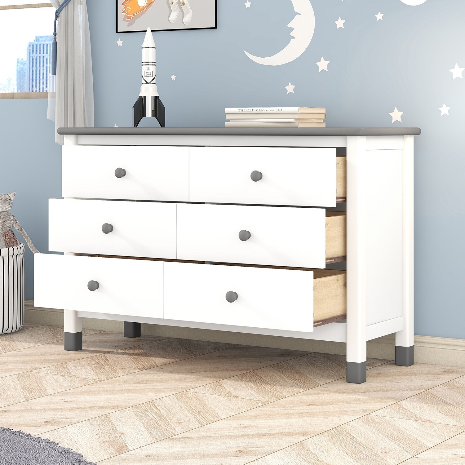 Wooden Storage Dresser with 6 Drawers, Storage Cabinet for Bedroom