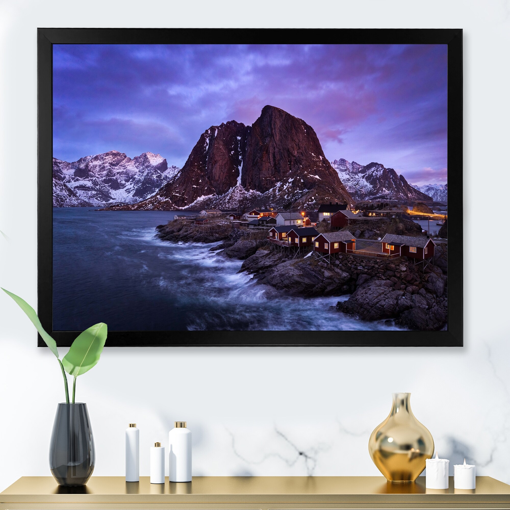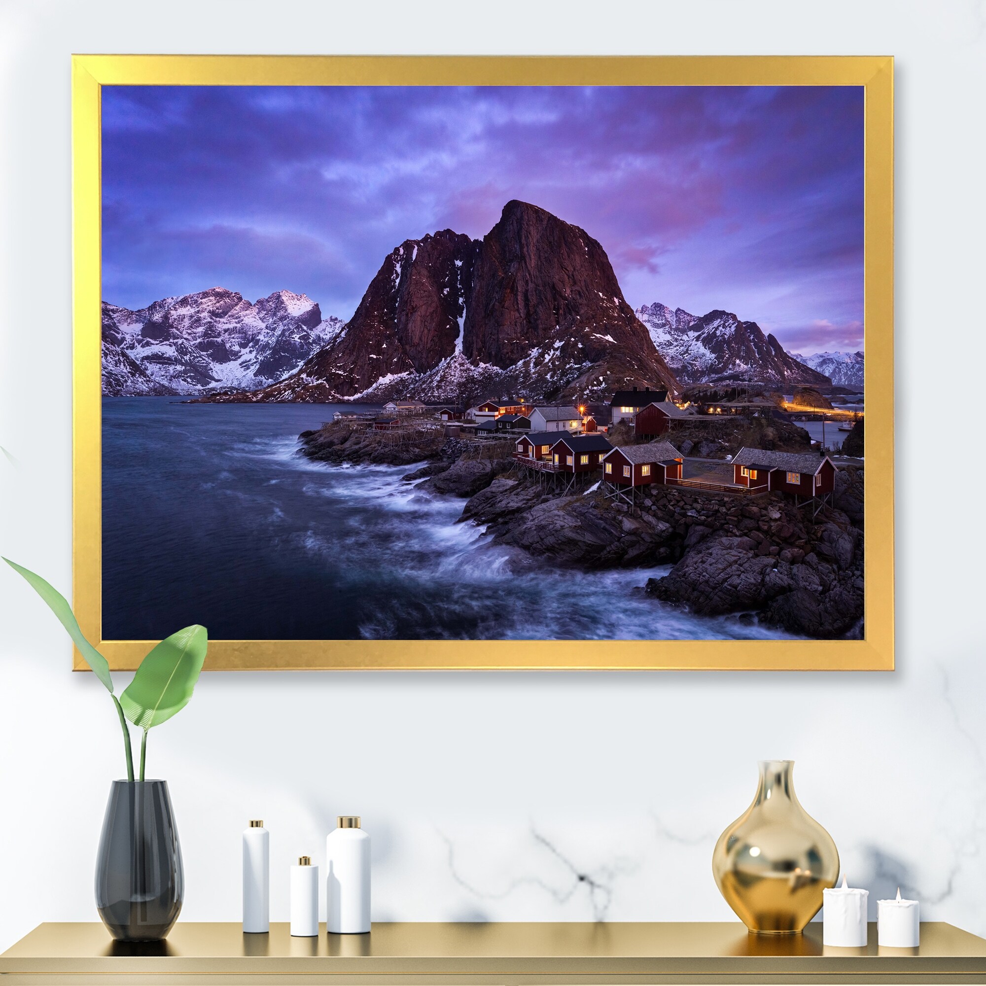 Designart "Fishing Village With Houses in Homnoya At Dusk" Nautical & Coastal Framed Art Print