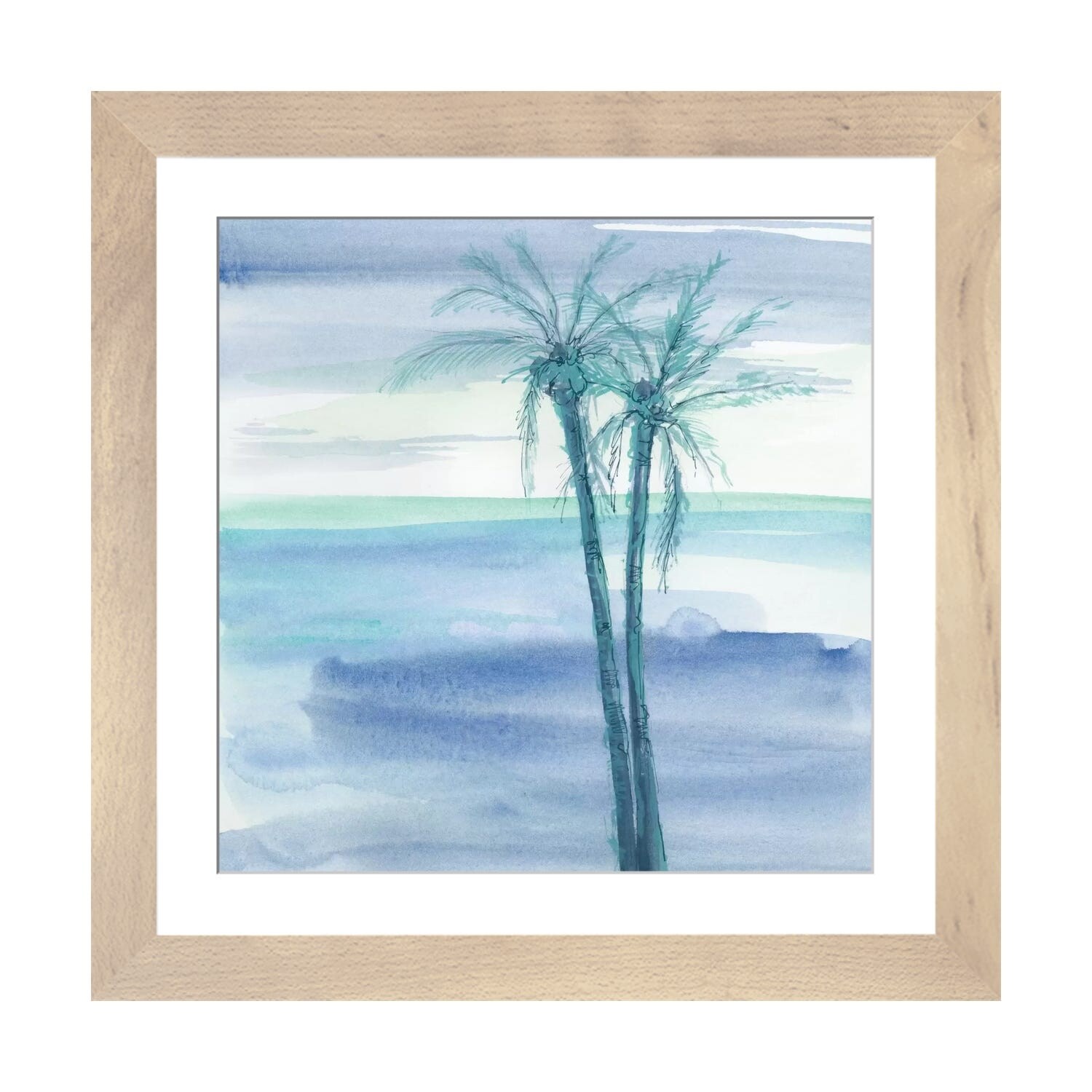 Designart 'Peaceful Dusk I Tropical' Tropical Print on Natural Pine Wood - Blue