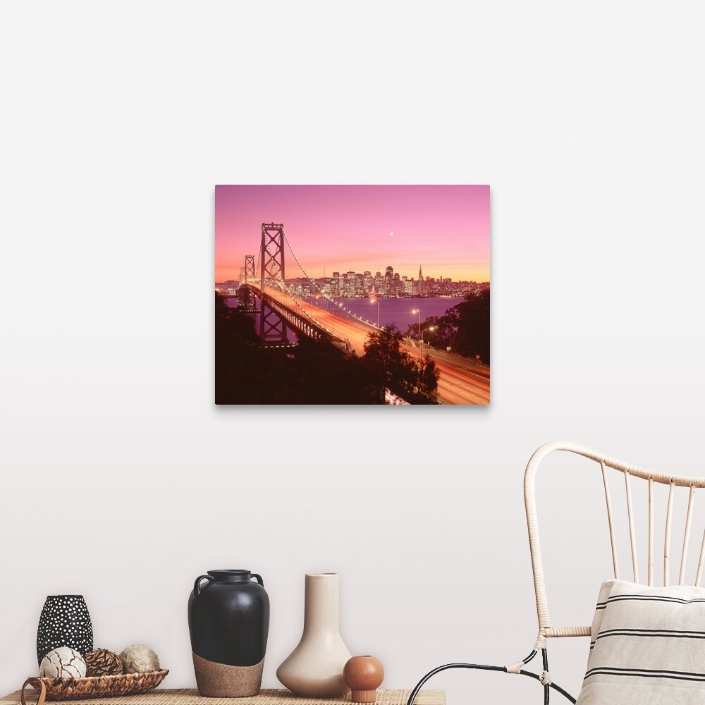 "California, San Francisco, Bay Bridge at dusk" Canvas Wall Art