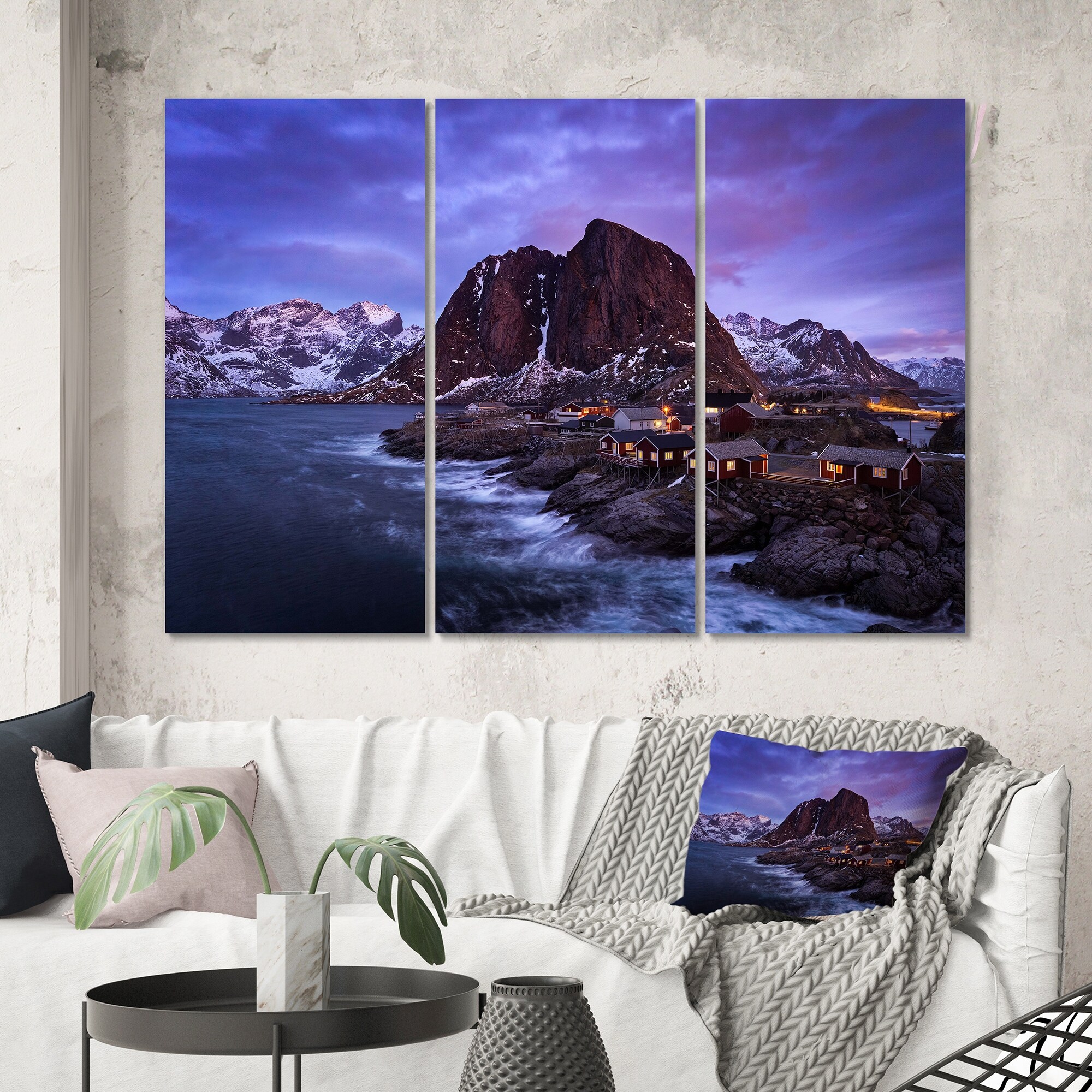 Designart "Fishing Village With Houses in Homnoya At Dusk" Nautical & Coastal Canvas Wall Art Print