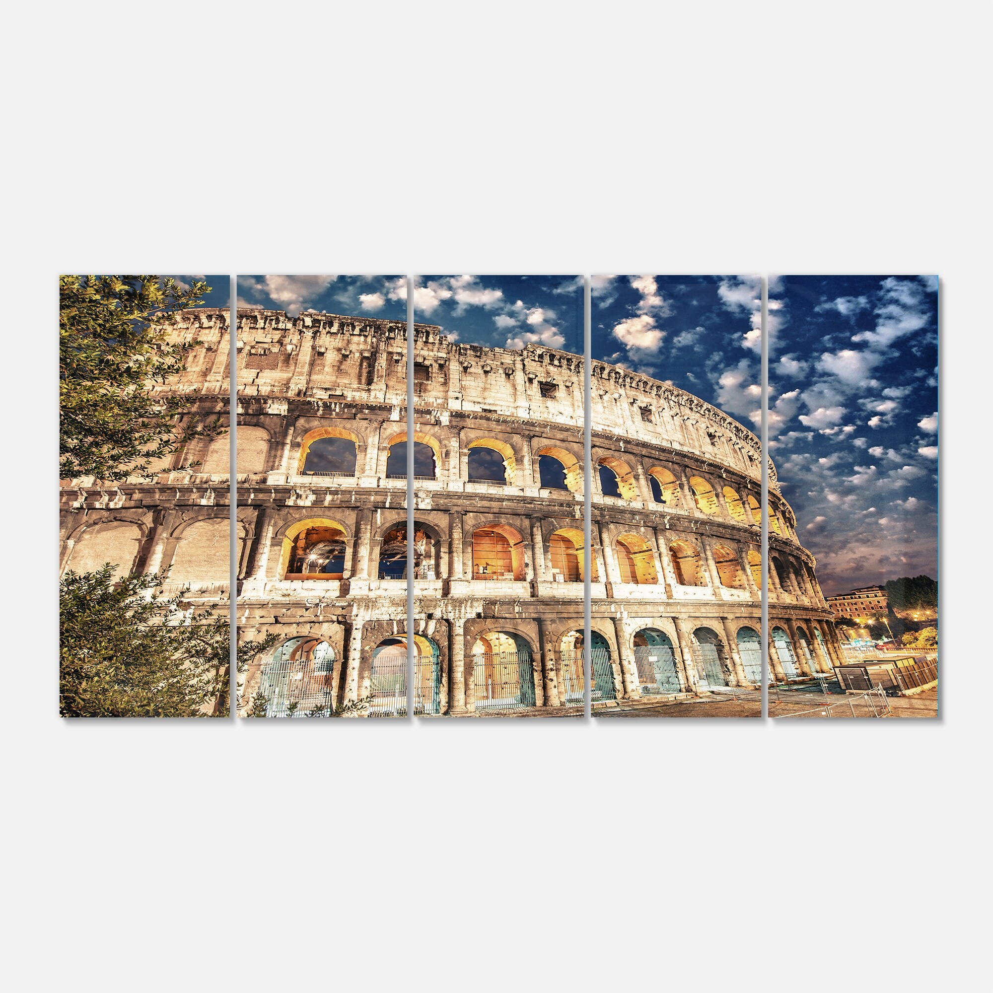 Designart 'Wonderful Coliseum at Dusk' Landscape Artwork Glossy Metal Wall Art